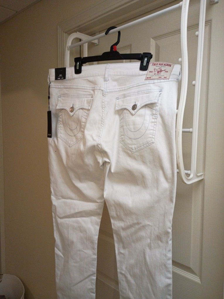 Brand new with tags , size 38x32 Color optic white with light blue stitching Relaxed slim fit