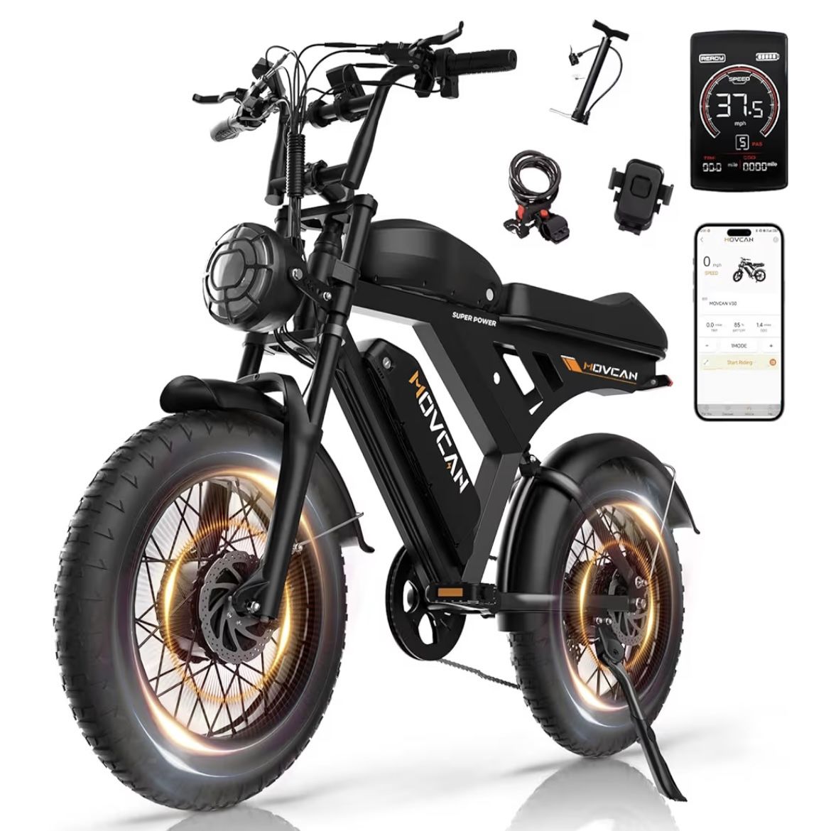 MOVCAN V30 Series Electric Bike for Adults,1000W/1500W/3000W, 28/32/37.5MPH,48V 15.6/31.2/40AH Battery,Up to 120Mile Dual Hydraulic Brake,20" Fat Tire