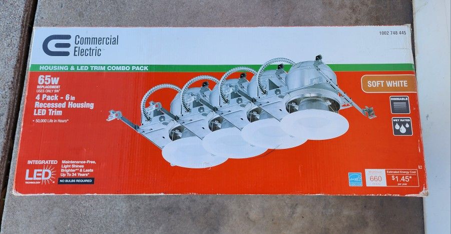 NEW IN BOX Commerical Electric 4pack recessed can lighting. Didn't need these and lights are still in the box and were never taken out. $10 and must meet in Mesa for pickup. Thank you.