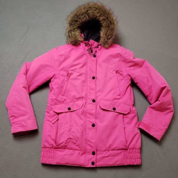 Firefly winter - ski snowboarding jacket. Could be used as a snowmobile jacket or just as a winter everyday use parka. Beautiful and bright. Has some white paint flecks over the front of the jacket as pictured. Some minor surface transfer stain under the arms as pictured. Warm winter jacket, faux fur on hood. Size M