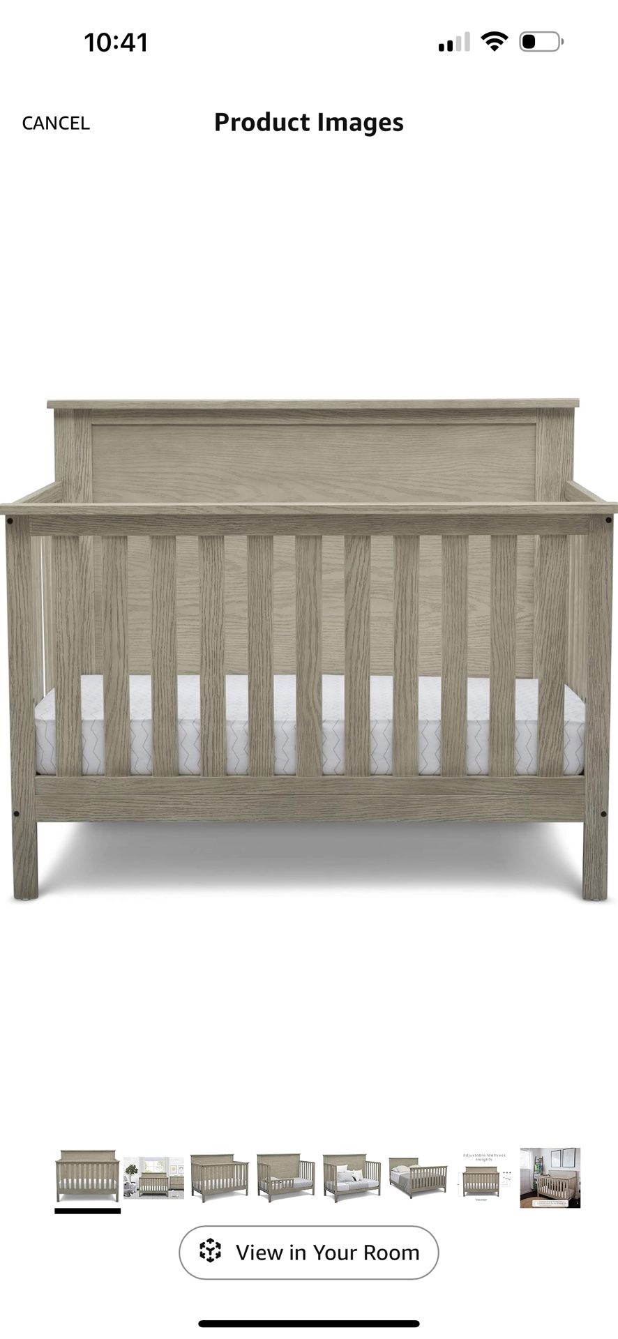Delta Middleton 4 in 1 full size crib. Color: Limestone texture. Potential of full size crib, toddler bed, daybed, or full size bed. Highly rated on Amazon. Brand new factory sealed box. Normally retails for $280.00