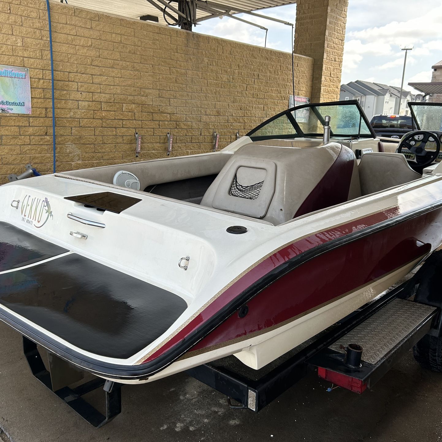 New battery new solenoid new ignition all new spark plugs original gecko trailer with chrome rims brand new starter and new 4 barrel electric choke carburetor new water pump. Runs great. I’m having to relocate to the east coast. Need to sell this week. Make me an offer. Current AZ registration and clean title. 5.7 liter engine v8 rips on the water. Top speed 55