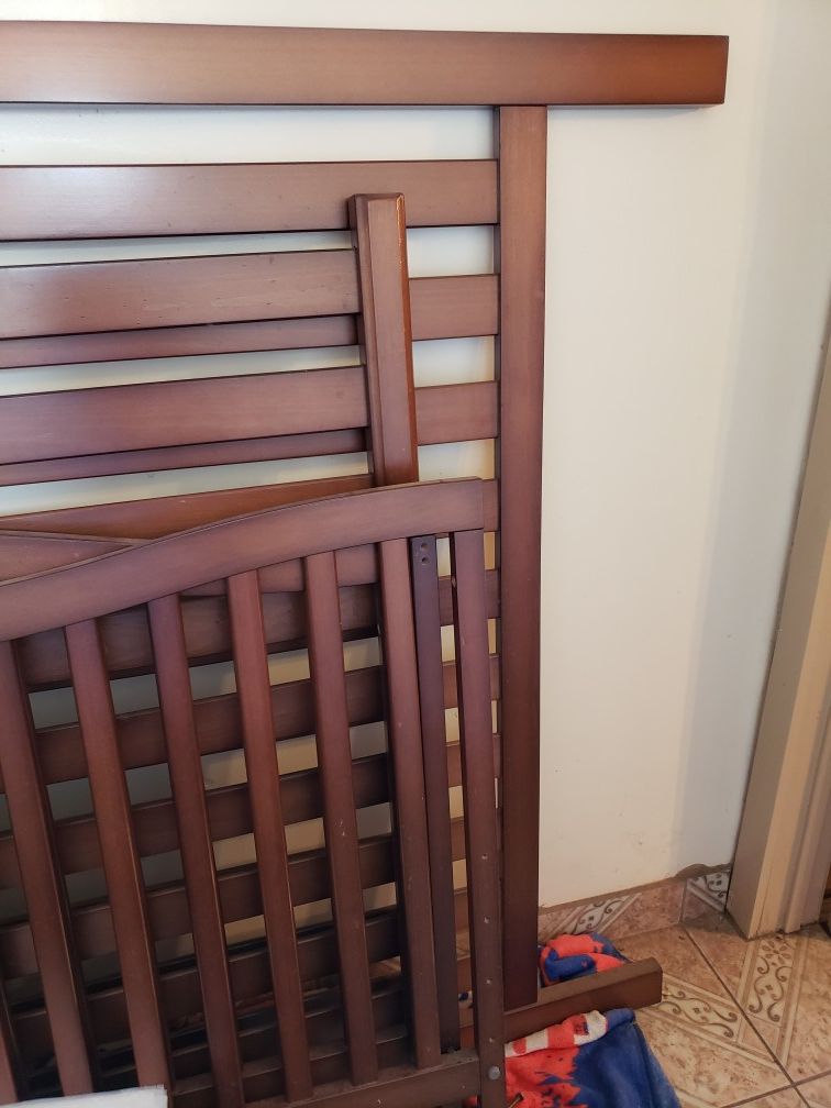 Sorry I didnt take a picture of the crib put together. Comes with spring frame but no mattress .missing a screw so selling for 20$