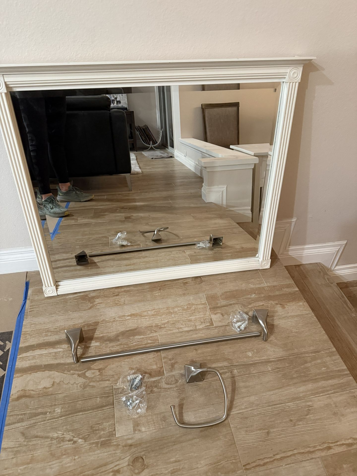 Mirror 35x 30 inches, towel rack (everly Home Depot) 23/24 inches, hand towel rack( everly Home Depot) 5 inches . All 3 items $40.00