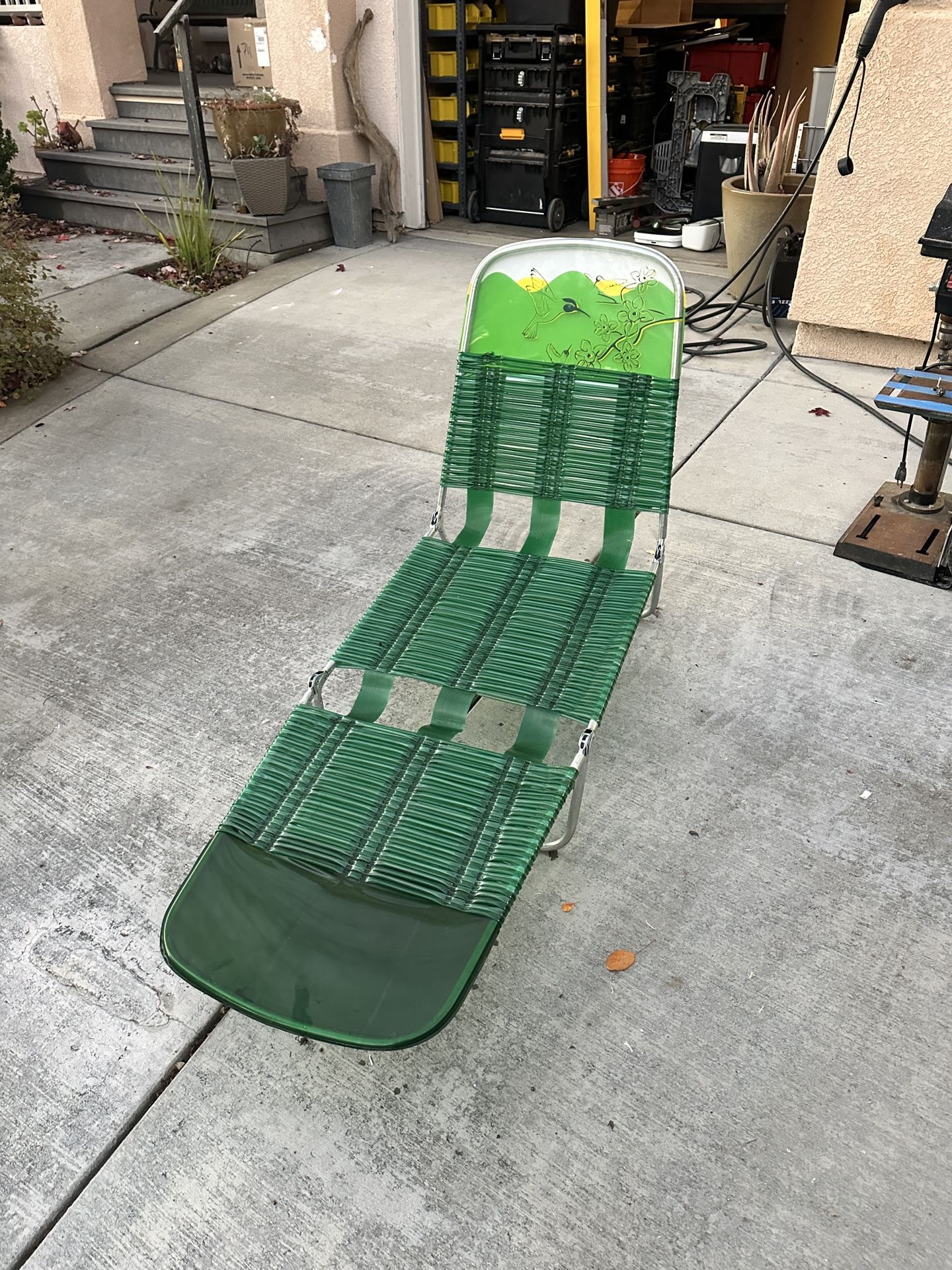 I have two loungers and one folding chair and one more of the same with some rust that is for free. Do you work perfectly well hardly used.