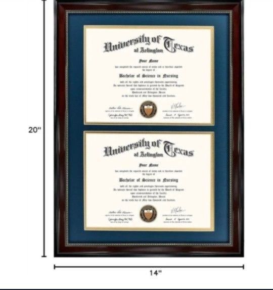 GraduationMall 14x20 Double Diploma Frame, Display 8.5x11 Certificate with Navy over Gold Mat,UV Protection Acrylic,Mahogany with Gold Beads