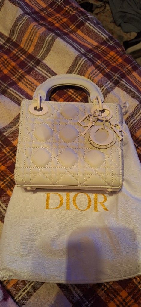 This is an authentic ultra matte mini lady Dior bag in an off white, kind of light beige color. It is in new condition. Has number inside bag as well as the certificate. Has the cloth bag as well. Make a reasonable offer.