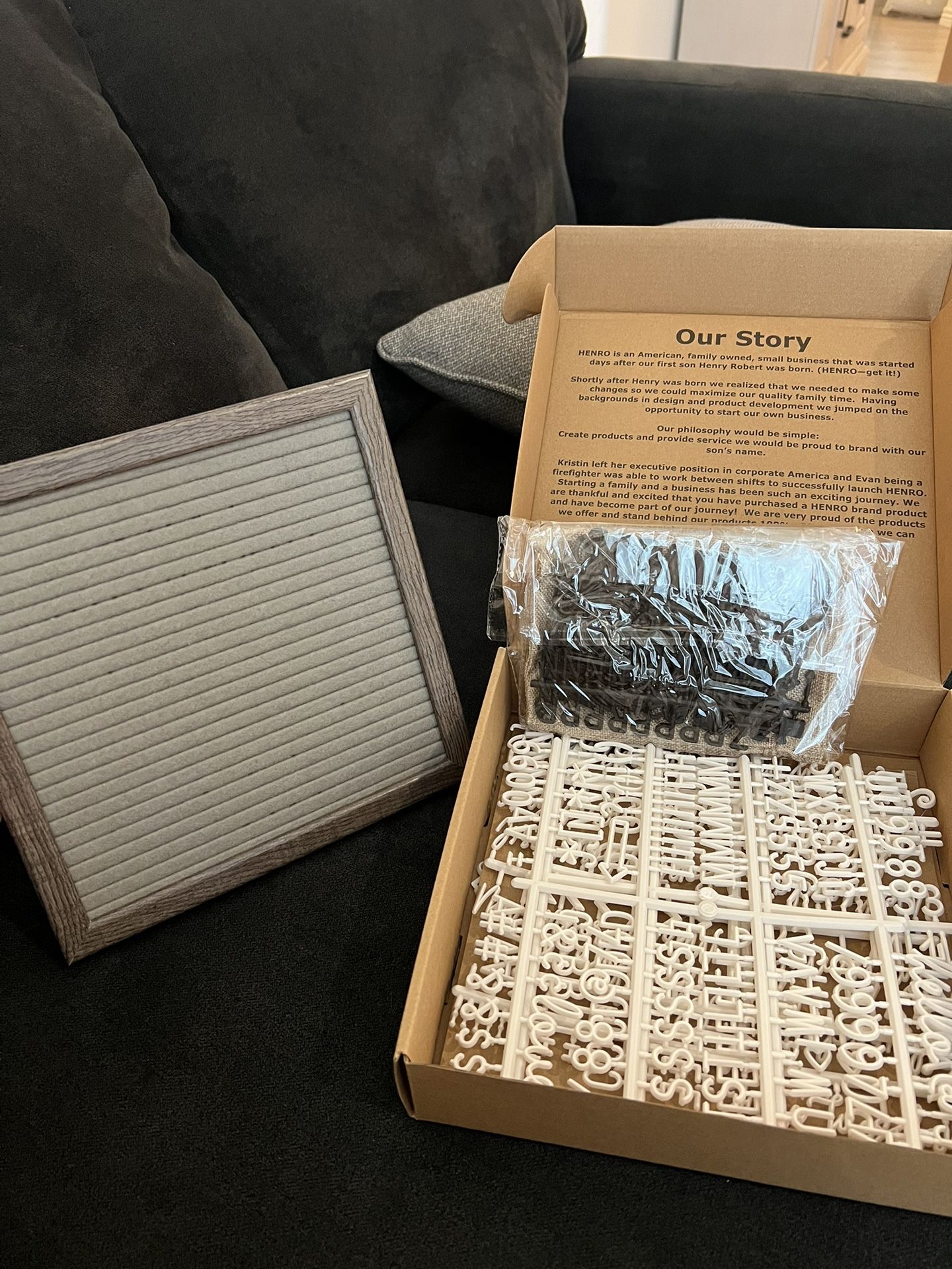 10 x 10 felt letter board. Comes with white and black letters/characters and a little sack to store them. Brand new, only used once for a pregnancy announcement. PICK UP ONLY VAL VISTA & RED MOUNTAIN 202