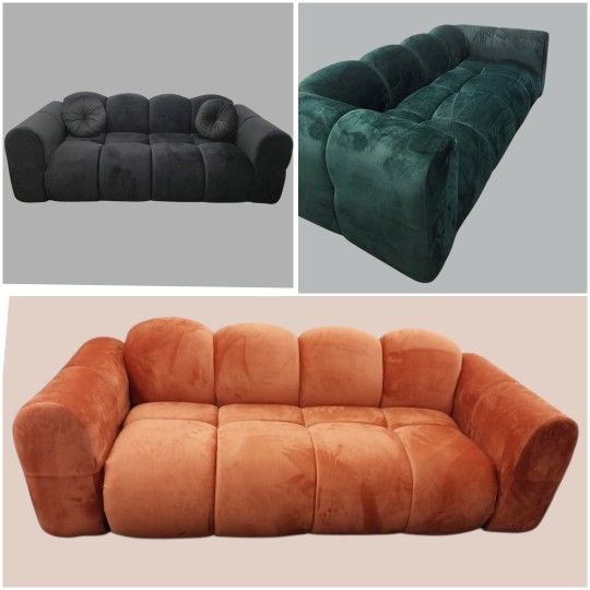 BRAND NEW 9ft SOFA COUCH, Velvet ORANGE, BLACK, Evergreen FABRIC, CUSTOM MADE AVAILABLE