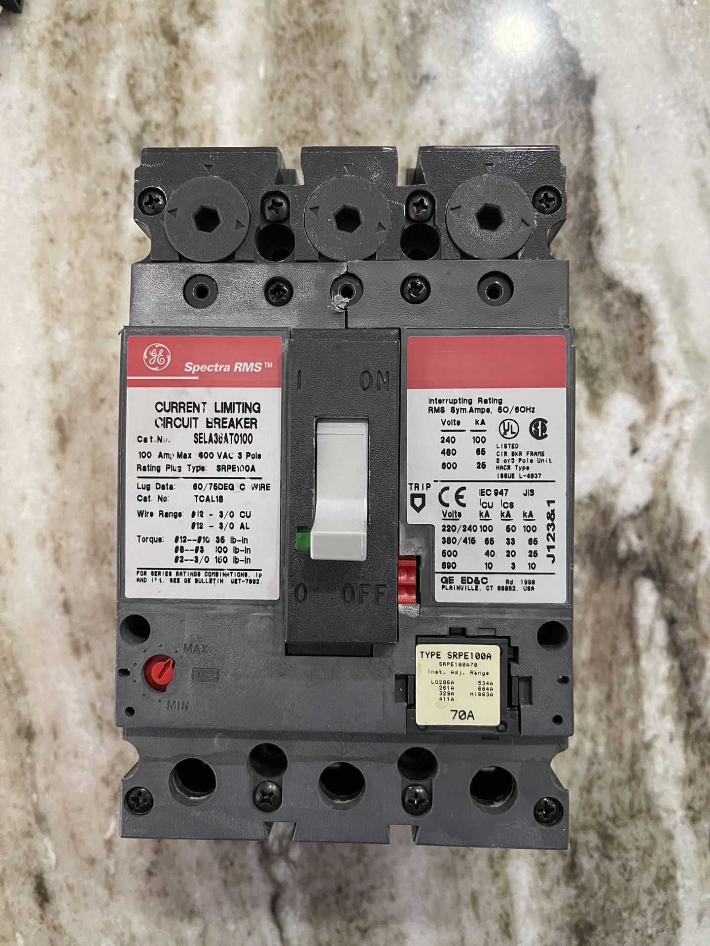 GE Spectra RMS Breaker with 70A rated cube.