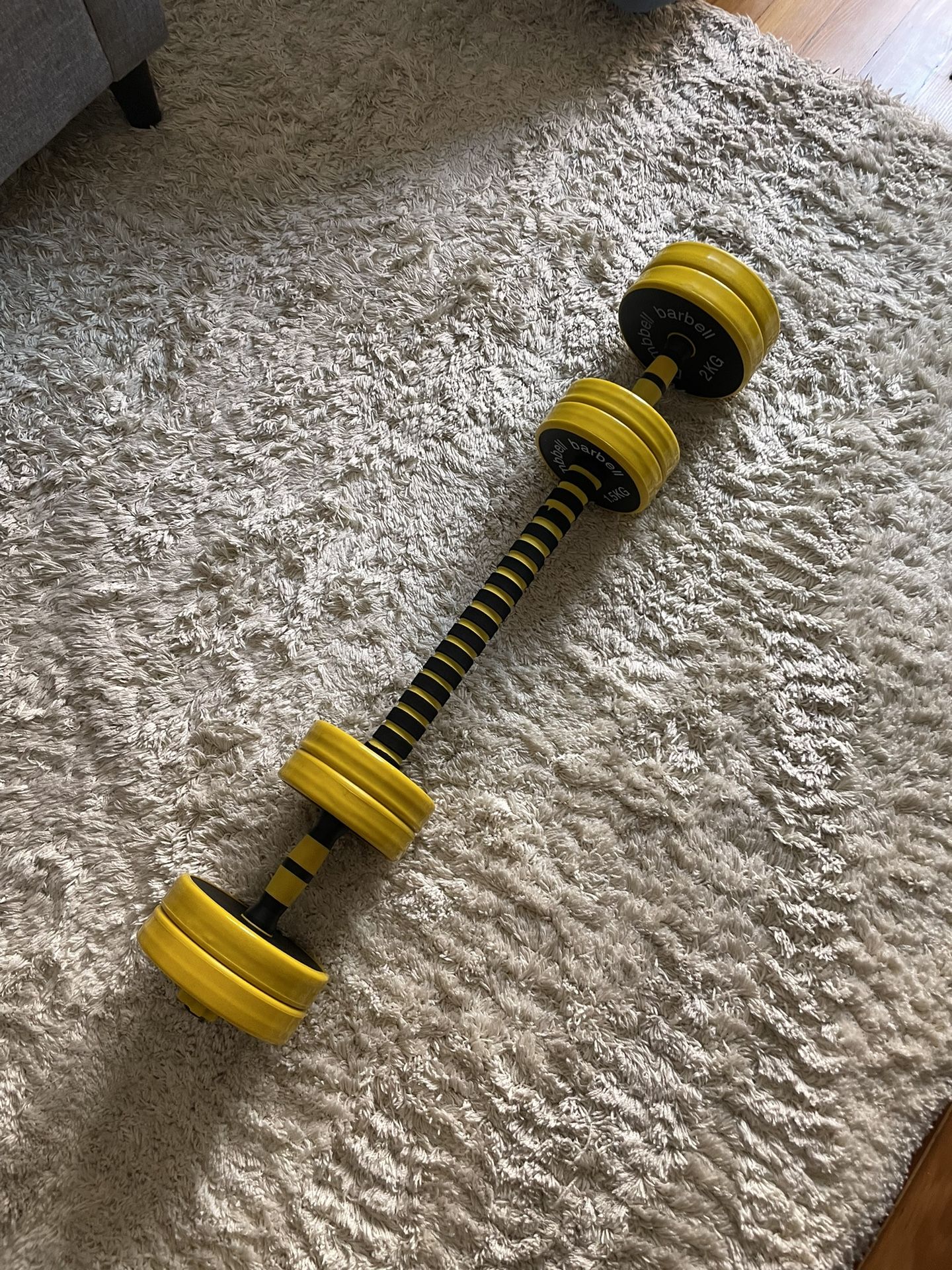 4x - 1.5kg 4x - 2kg As a barbell - 30 lbs. as dumbbells, 2x 15 lbs. Runs about $75 on amazon (CDCASA brand)