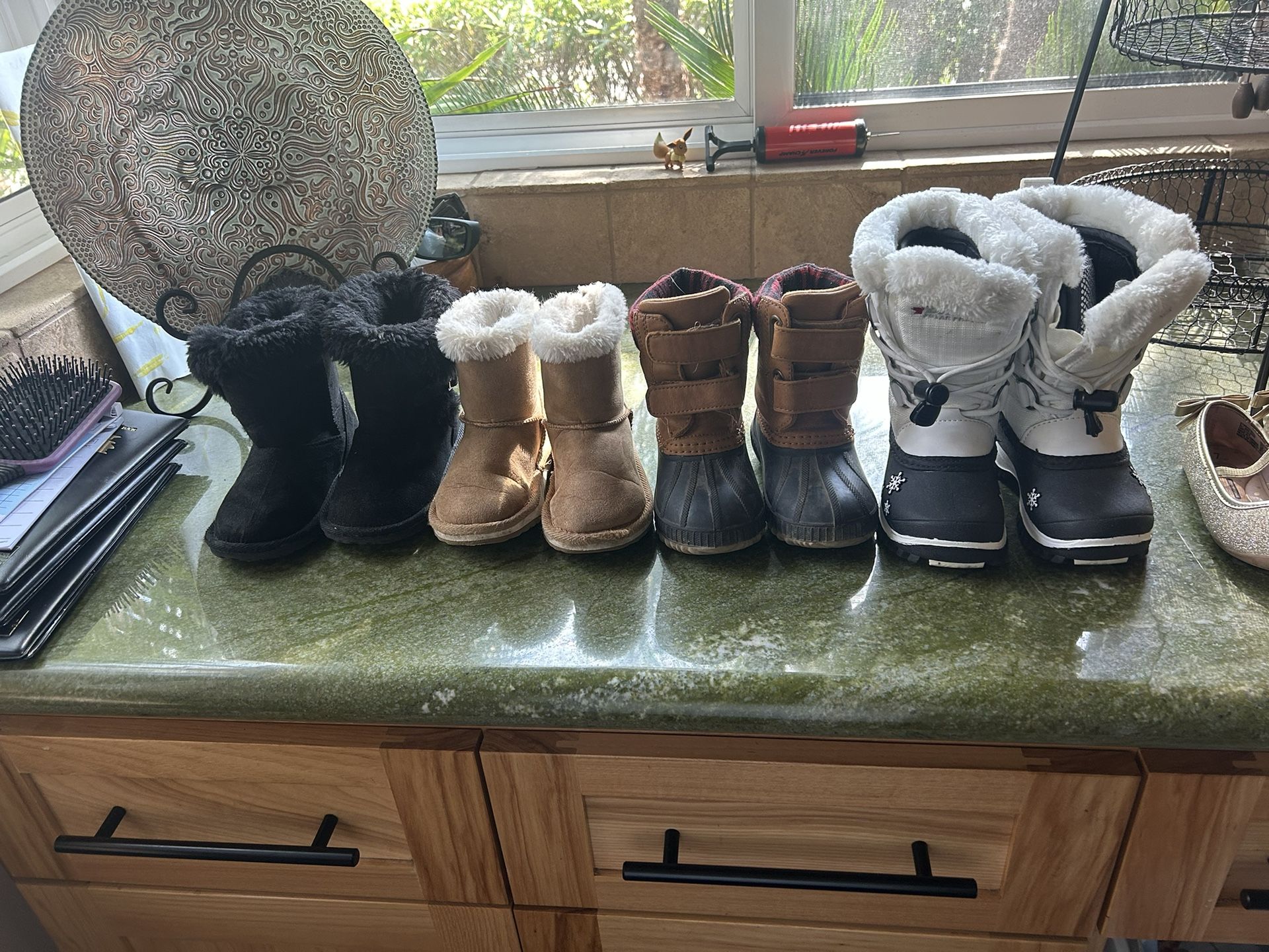 White boots size 6.5 Black uggs size 8 Brown uggs size 7 Brown outdoor plaid boot size 7