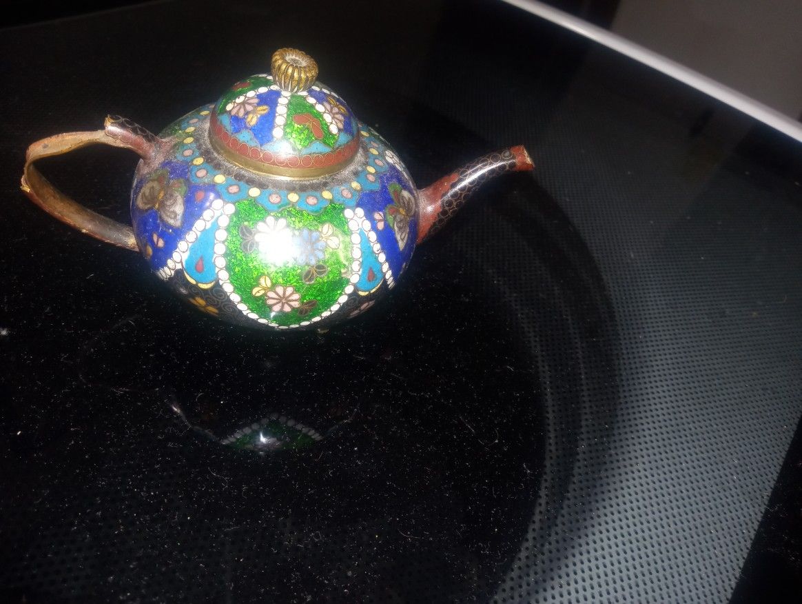 this is a miniature Japanese cloisonné enamel teapot, likely from the Meiji period (1(contact info removed)).