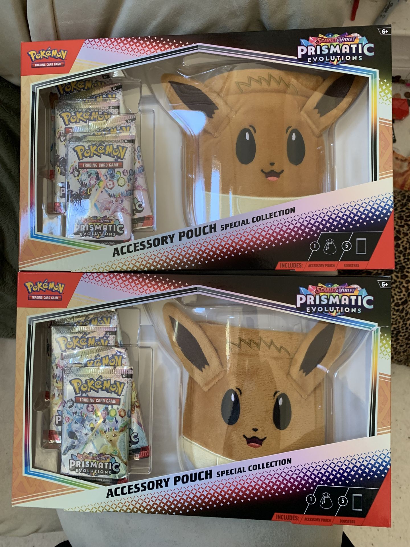 BRAND NEW (2) POUCH EACH BOX CONTAINS 5- PACKS, 1- EEVEE POUCH $100 FOR BOTH CASH OR APPLE PAY ONLY VISTA PICKUP