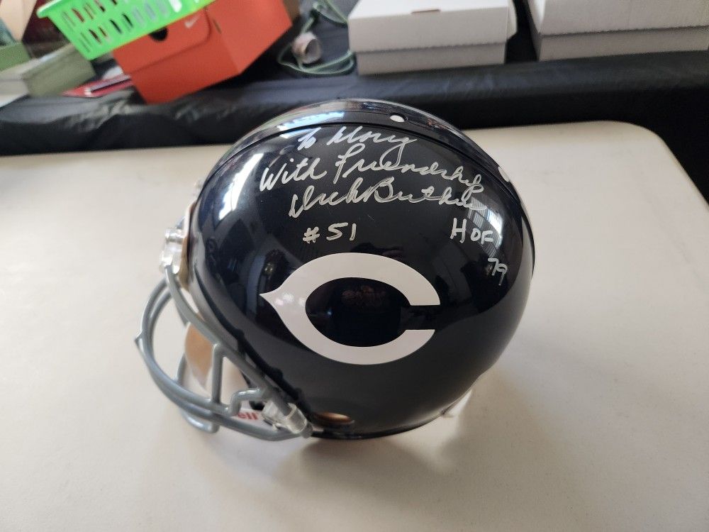 Dick Butkus Signed Helmet with Inscription. Hall of Fame class of 1979. Full size authentic helmet with no COA. Chicago Bears. Asking $450 or best offer.