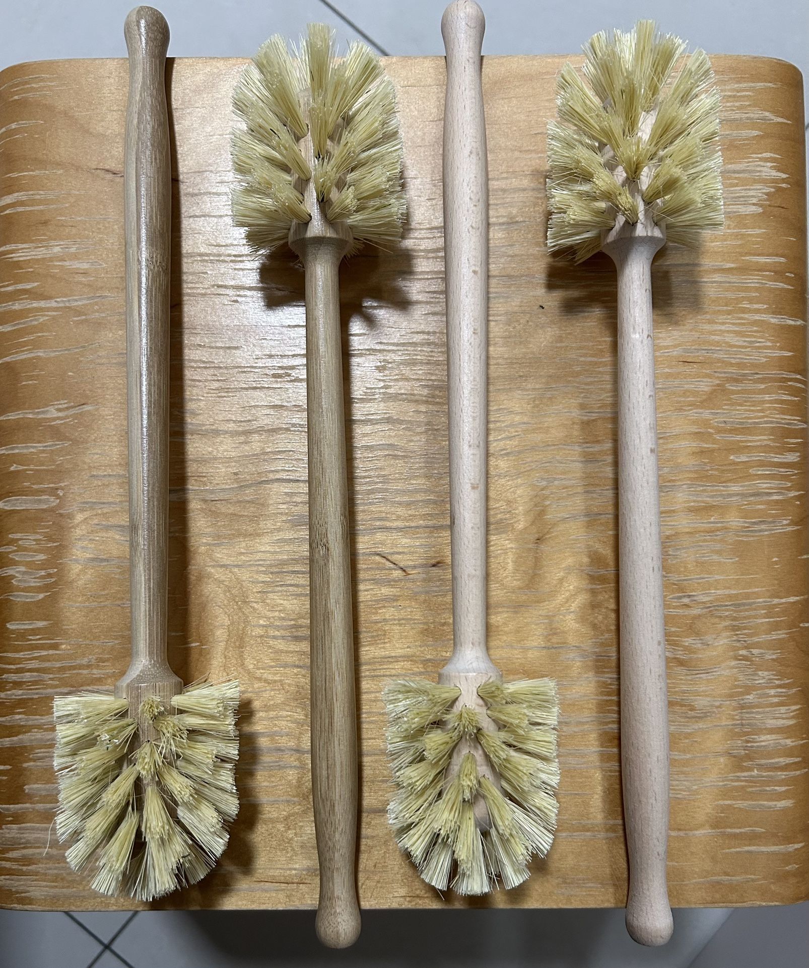 Brand new eco-friendly wooden toilet cleaner brushes Handle is made of bamboo or beech wood and bristles are made of sisal $5 each Plastic is full of chemicals and when we throw it away, it goes back into the air or ocean and eventually back into our bodies