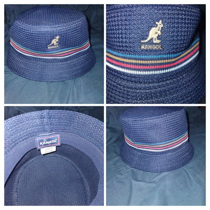 Kangol Multi Stripe Mesh Bin Hat Navy Blue Size Medium Bucket Kangaroo Logo