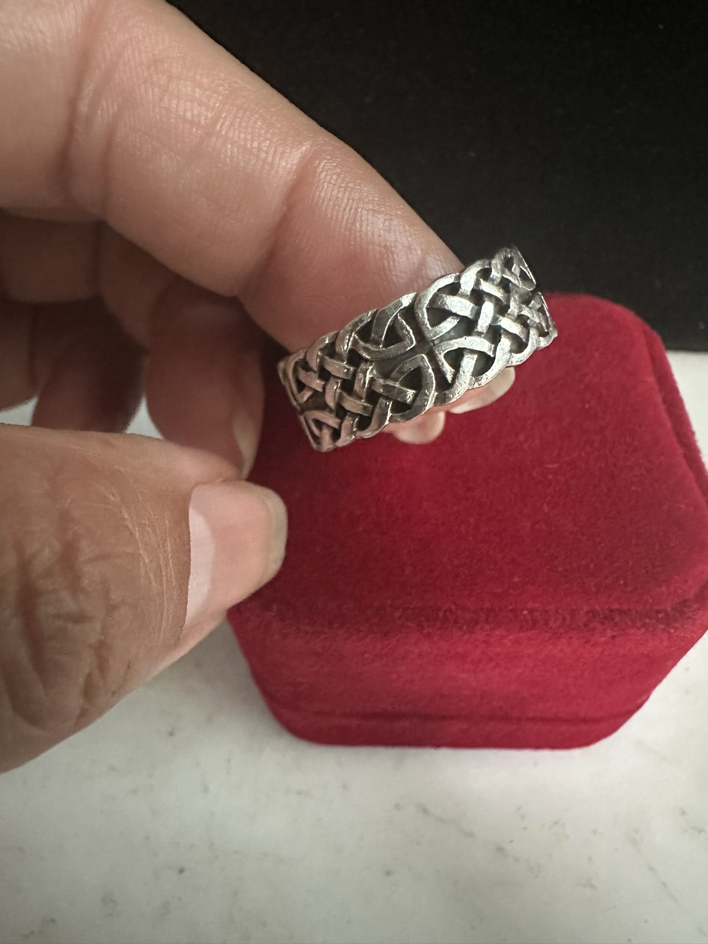 925 Sterling Silver, Celtic W/ Cross Design Wide Band Ring , Size 9.25, Marked 925 , Design All Around The Band, Very Nice Ring
