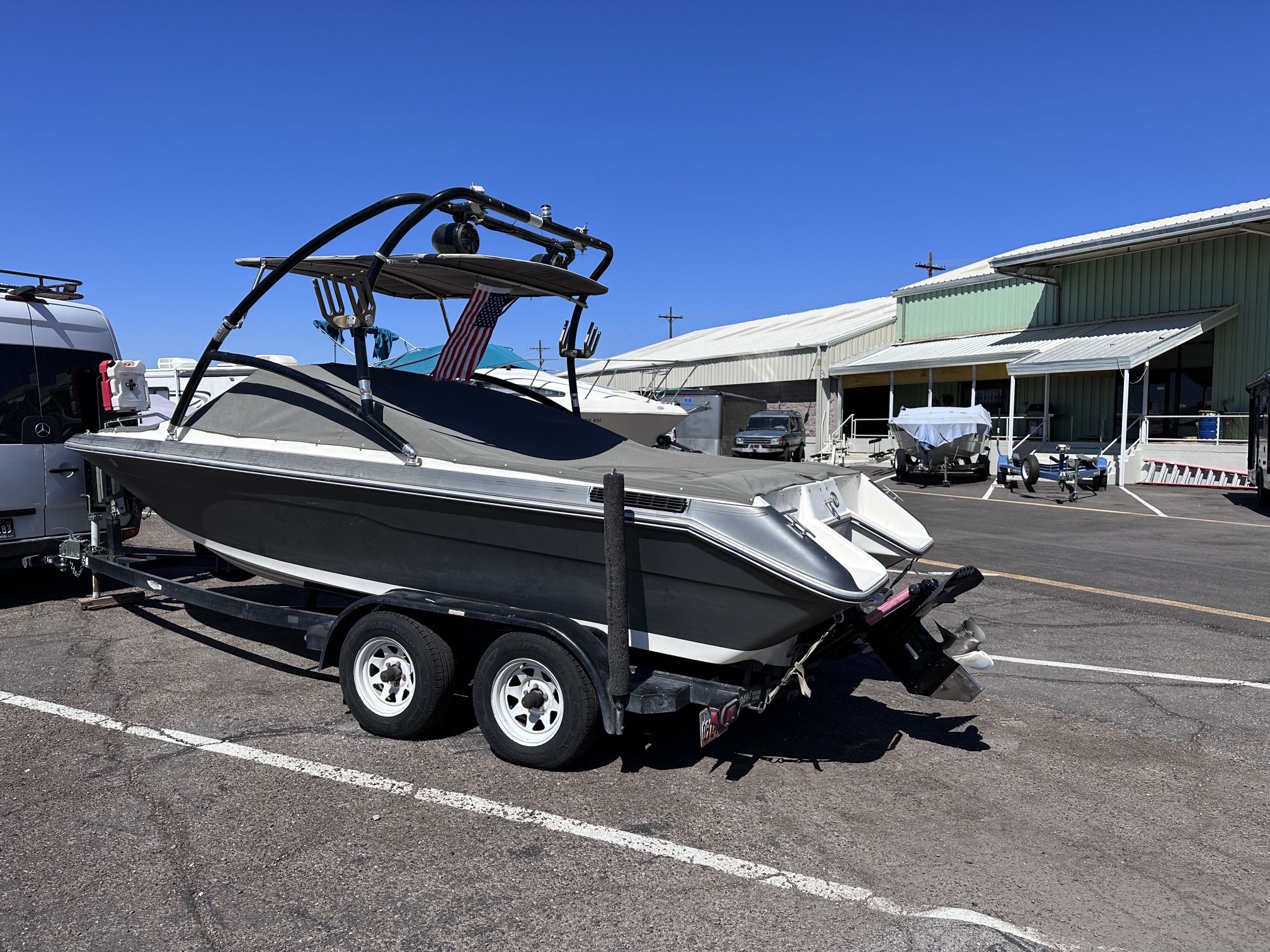 Upgraded interior and exterior wrapped grey. Wakeboard Tower .. New tires on trailer and runs great! original build had blue and grey interior. Now it’s orange and grey ..