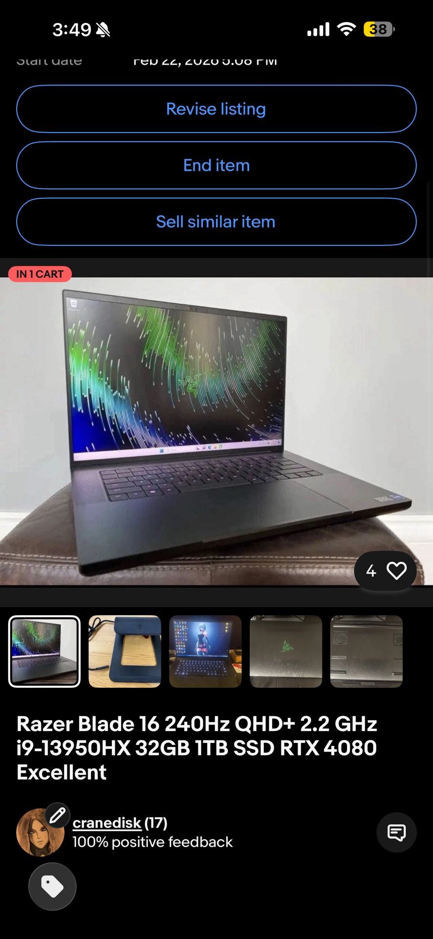 Price is firm, I'm not accepting $700 or $1000. Go get a 4070/5070 laptop at that price point. Specs: 1tb Rtx 4080 mobile I9-13950hx 32gb ddr5 sodimm 1tb ssd Selling cause I don't really use this laptop anymore. Can confidently say there are 0 issues with the laptop.