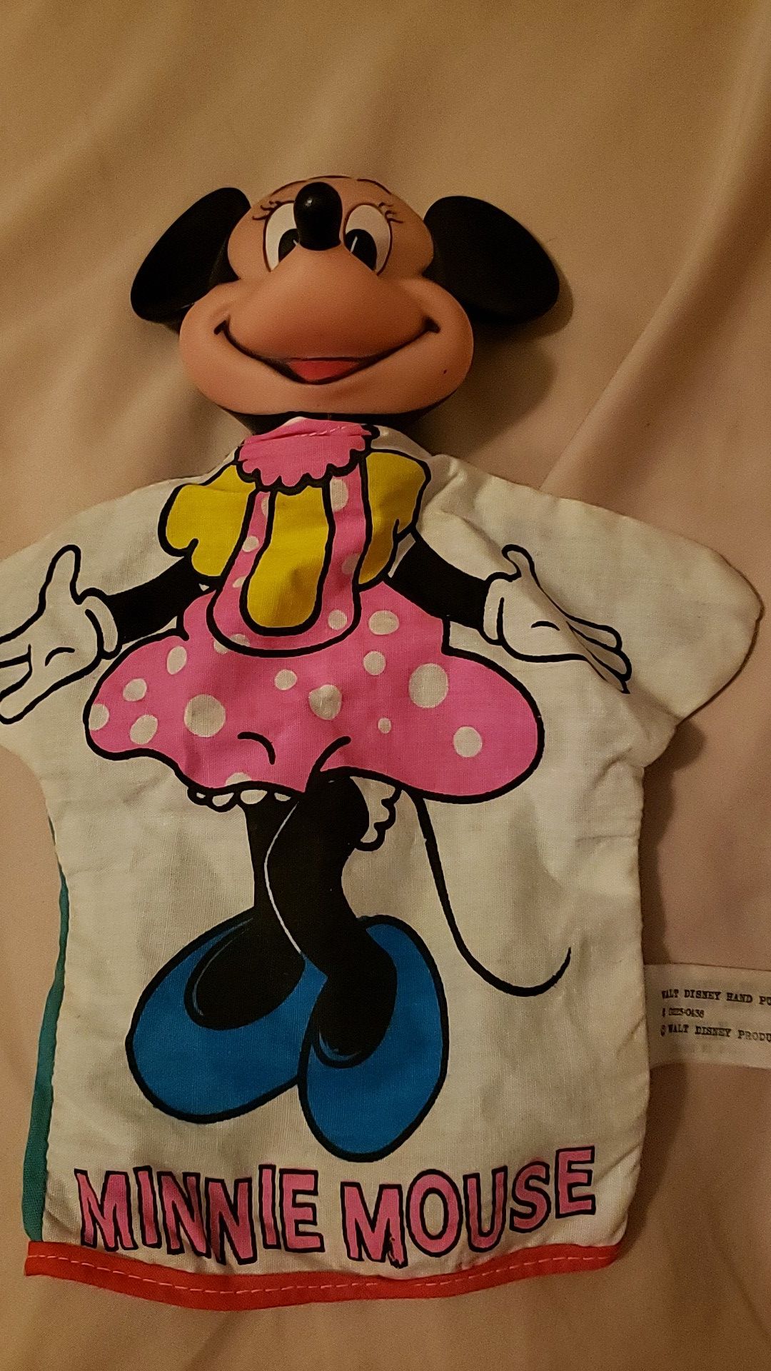 Walt Disney Hand Puppet (60s era). Minnie Mouse. Cloth body with soft plastic head. Very clean with no paint wear on the head. Great condition. Approximately 10in. Local pickup only.