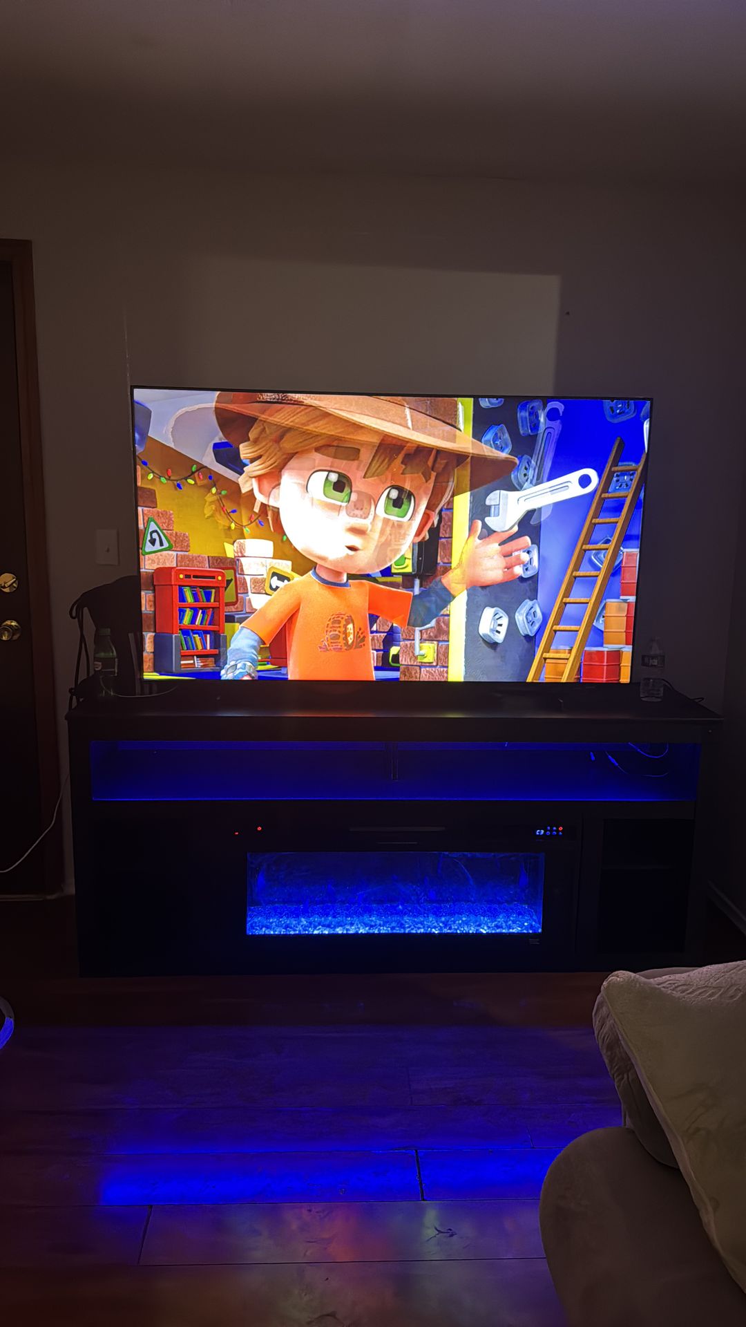 65 inch Samsung Smart TV with 72 inch fireplace TV stand for sale. All together $300 or $180 for the tv alone. Fireplace comes with a built-in heater. Must be picked up before Monday!