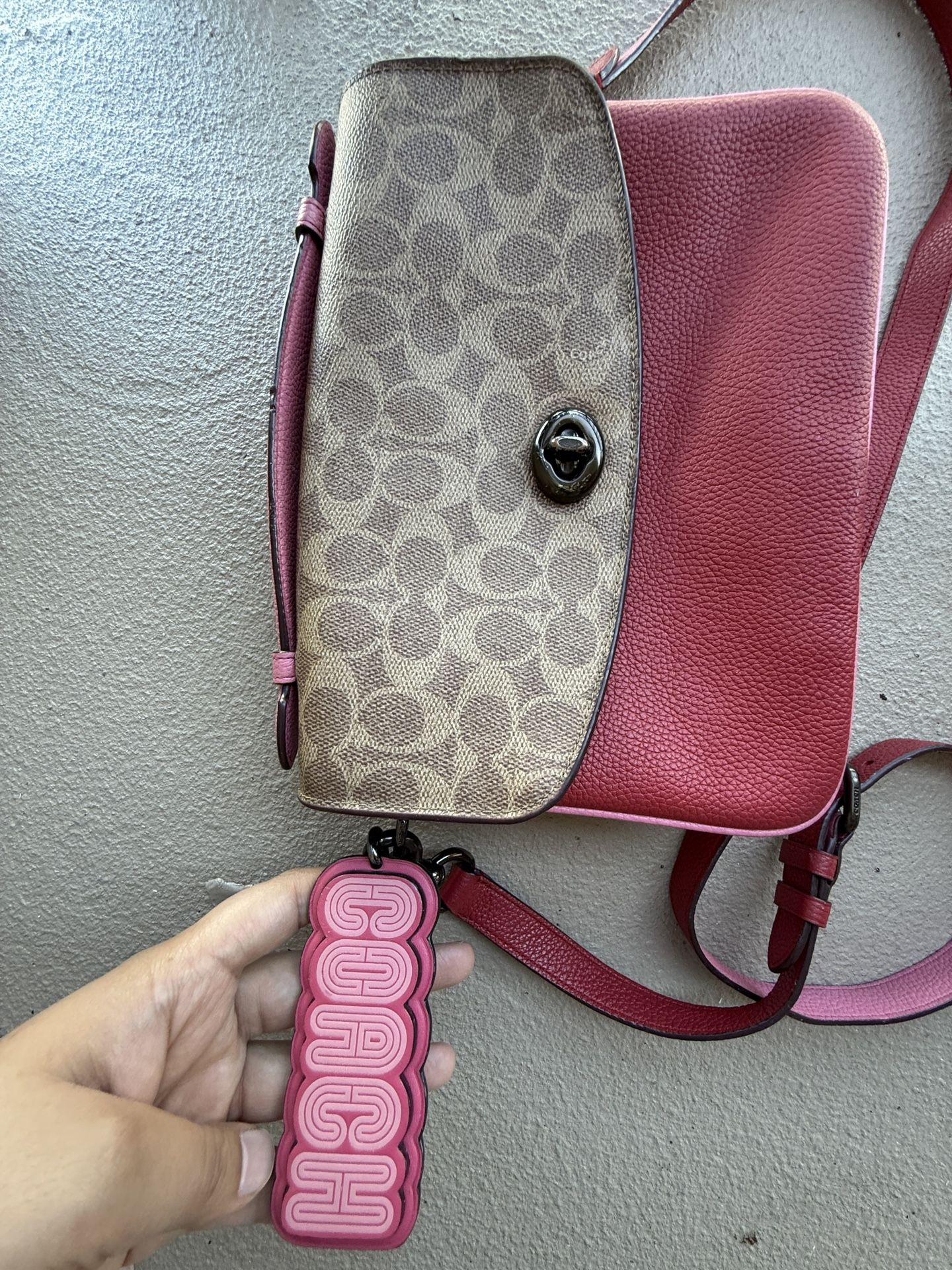 Coach Cassie Crossbody In Signature Blocking Tan Red/ Apple 74091 Bag.please see all photos.
