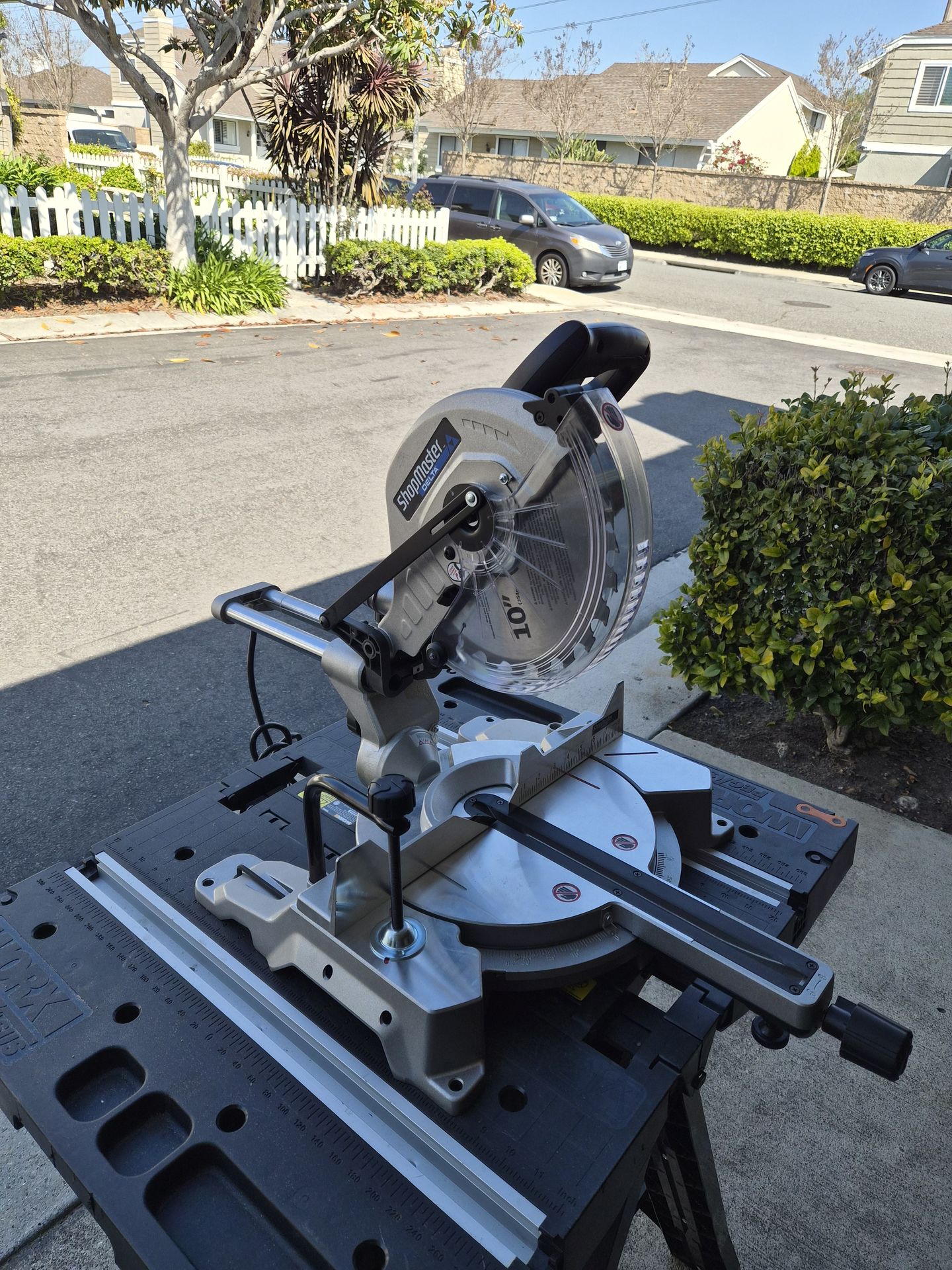 Practically new 10" Delta compound power miter saw. Excellent condition. Maybe used once or twice.