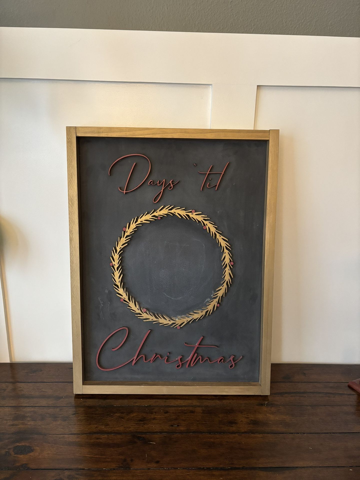 Art piece comes with small bag for chalk pieces. Dimensions are posted in pictures. We used 3M strips attached on the back for easy hanging. Pick up only in Oregon City, near Holcomb Elementary. Cross streets are Swan and Blue Mountain Way.