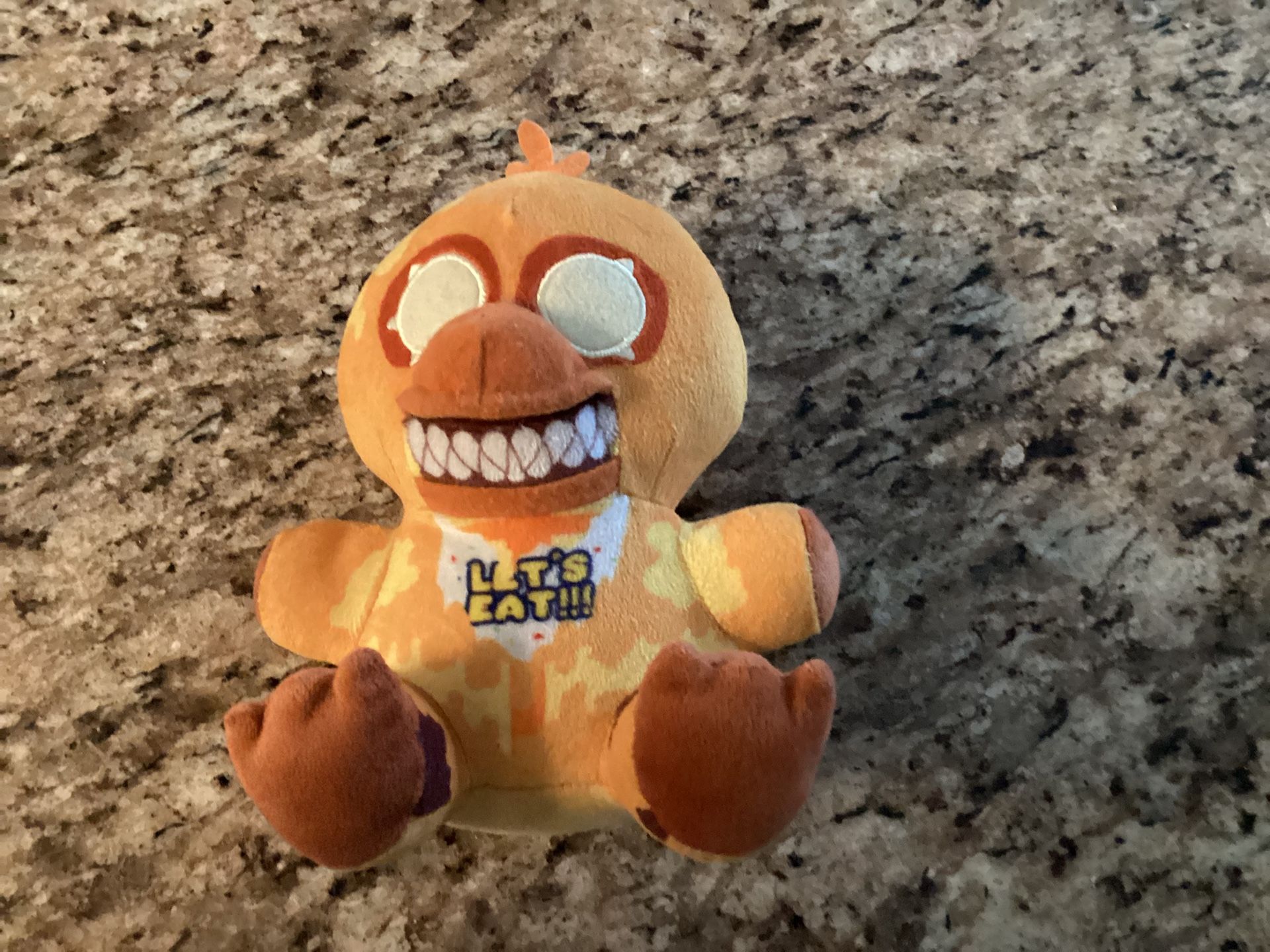 Five nights at Freddy Chica, and great condition no rips, tears or stains does not have tags approximately 7 inches tall