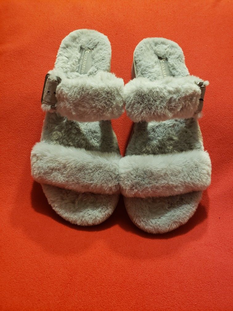 Koolaburra by UGG FURR-AH buckles slides in Faux Fur upper lining in silver size 9. Used as DISPLAY ONLY.