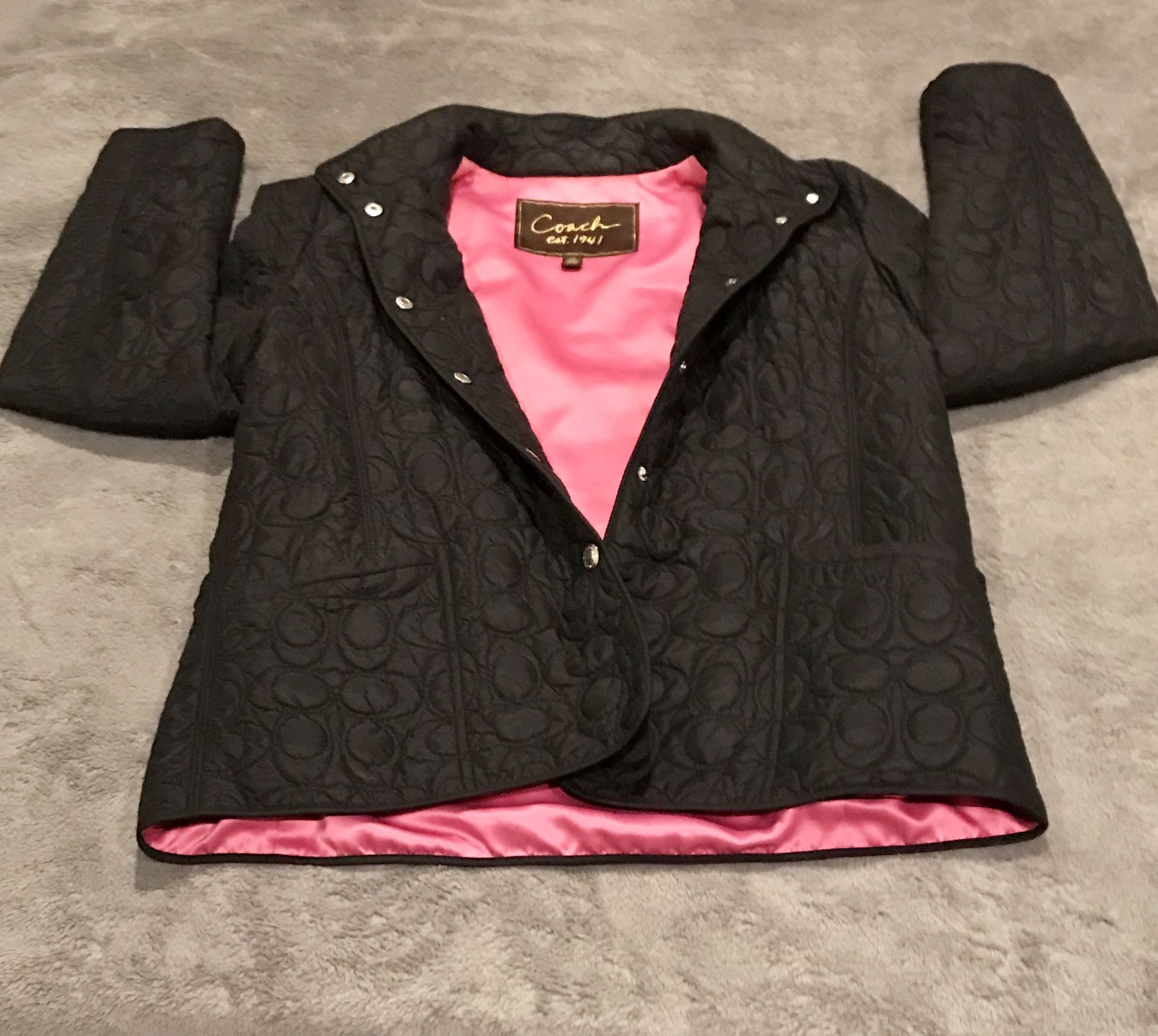 Authentic Coach Classic Quilted Logo Jacket Black with pink satin interior Size large Perfect for cold weather Pick up only