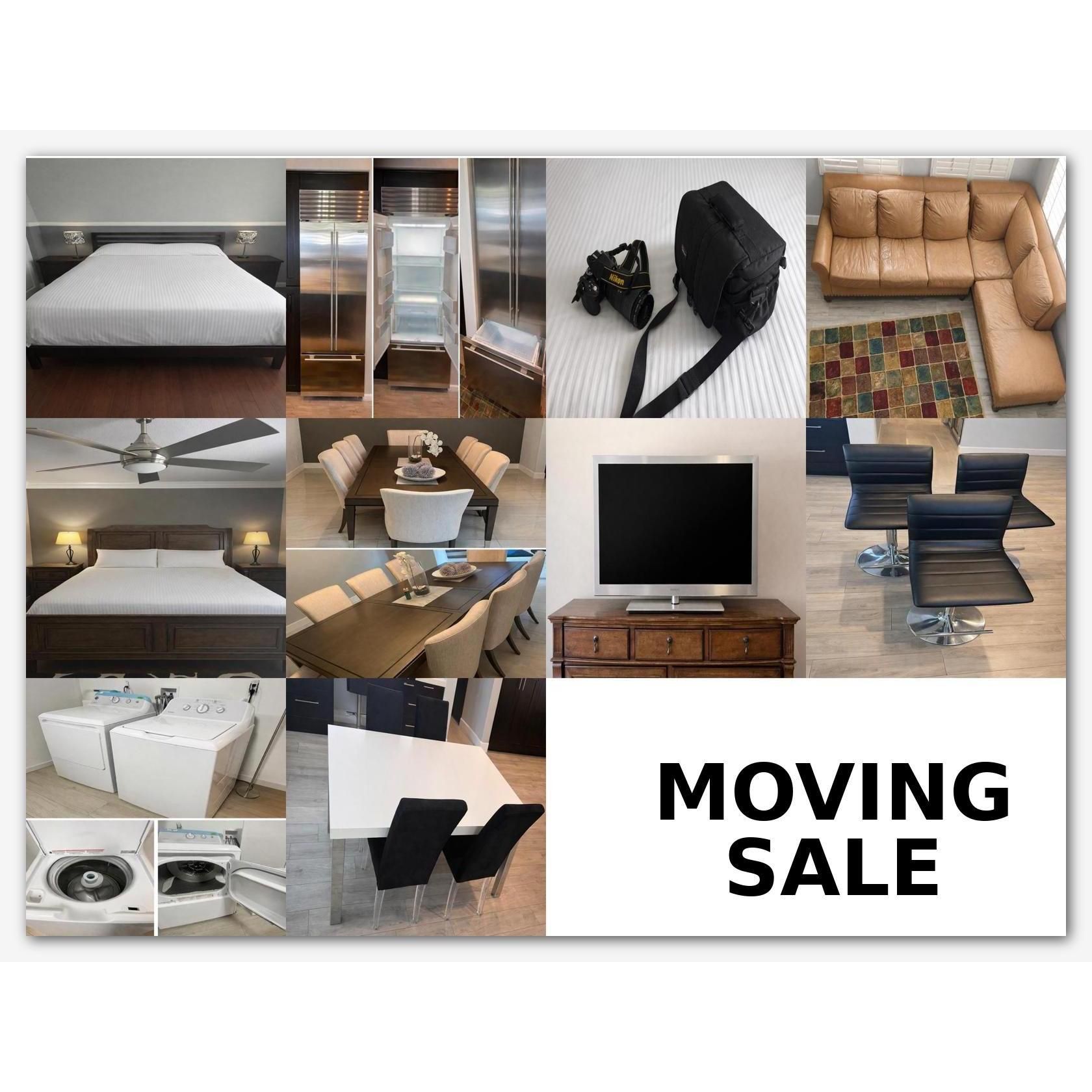 For sale are many miscellaneous items (appliances, furniture, electronics, etc) Prices are reasonably priced and negotiable. All items are at least 25% discounted. If you want exact dimensions please message me and I’ll reply promptly. 1. Queen size mattress and frame headboard $500 2. Subzero refrigerator and freezer combo $3000 3. Nikon DSLR pro camera $300 4. Brown leather couch sectional $$1800 5. King size bed frame and headboard $300 6. 9 piece elegant dining set $2500 7. 45 inch TV $100 8. Black bar stools x 3 $60 9. Washer and dryer set $500 10. 4 chairs and table $150 Make me an offer an offer for all. All items are in good condition. Thanks for looking.