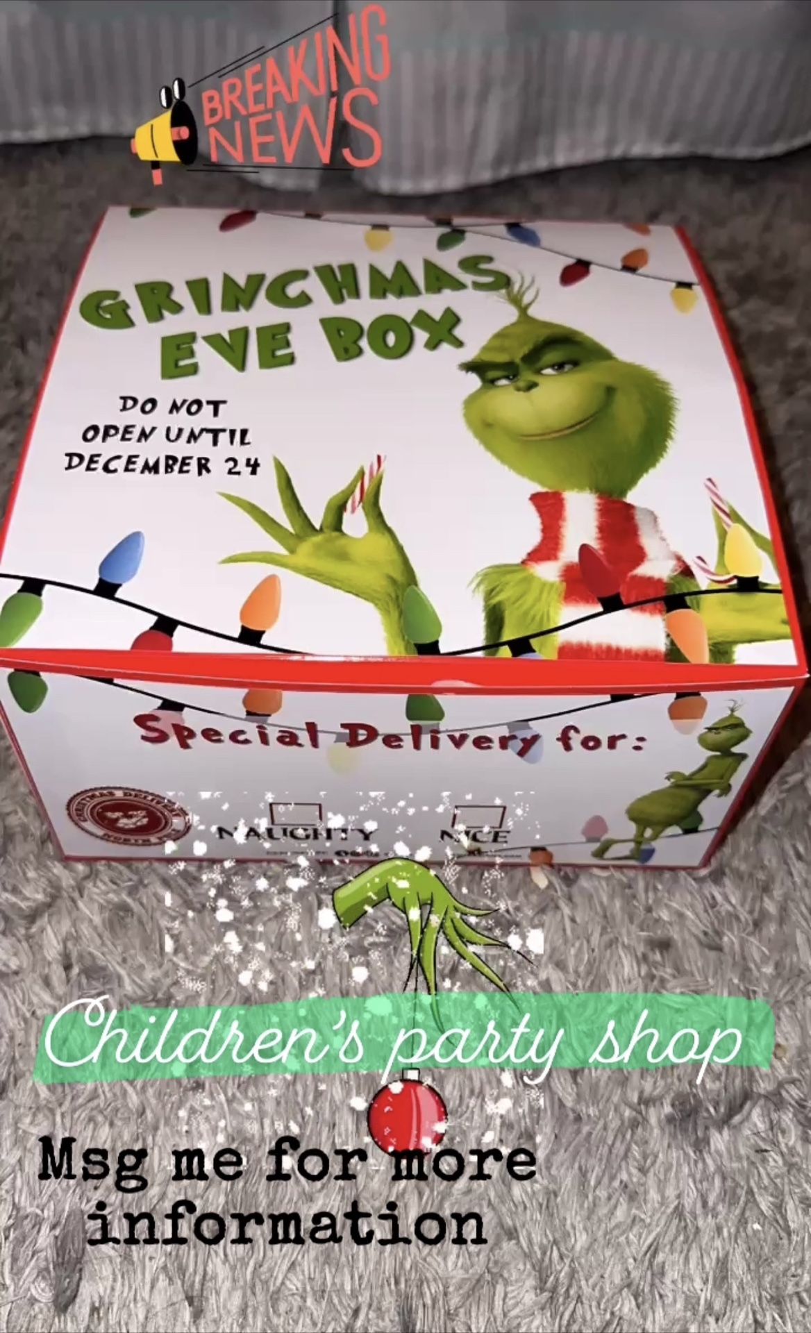 ππ Get Ready to Grinchify Your Christmas Eve! π Tired of the same old Christmas Eve traditions? π€ Want to add a dash of mischief and a sprinkle of Grinchy fun to your holiday celebrations? Look no further! Introducing our Christmas Eve Boxes β the perfect blend of naughtiness and holiday cheer! π π»π Inside each Box, you'll find: Full of yummy, customized treats, we are sure these boxes will make Christmas even more magical for your little ones. Each box comes with customized treats of the Grinch: Items include: Letter from the grinch π A Personalized grinch chip bag π¬ Grinch stickers π Rice Krispie treat π Grinchy Hot Cocoa packet π΄ Fruit Snacks πGrinch theme juice π π» Order now to make your Christmas Eve extra memorable for the whole family! Limited quantities available. π π Order Deadline: 12/15 πΈ Price: $30 To order, simply message us Don't let the Grinch steal Christmas β let's make it a Grinch-tastic holiday together! π²β€οΈ #ChristmasEve #GrinchBox #HolidayFun #ChristmasCheer #GrinchyGoodness #ShopLocalGrin