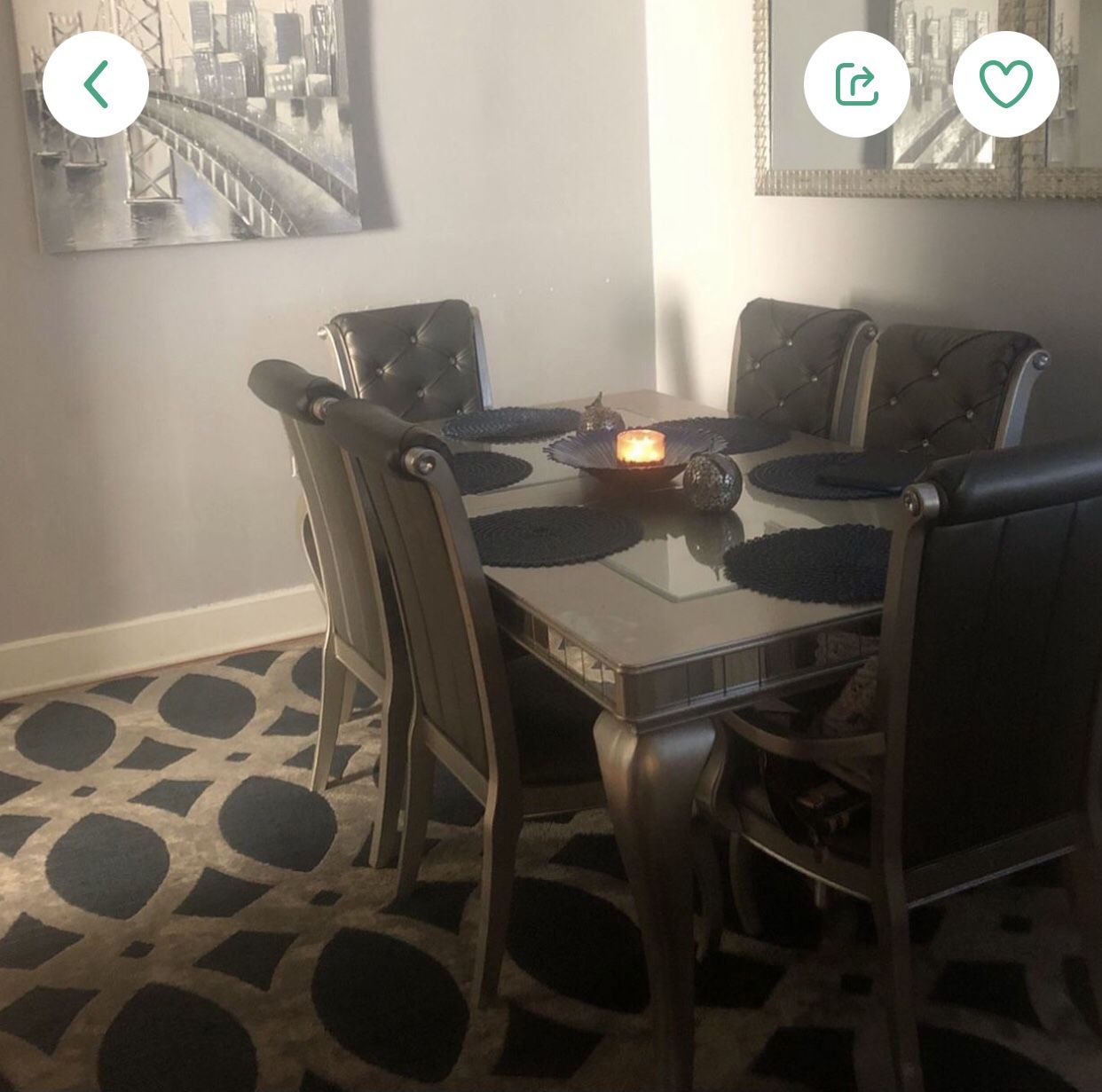 400$ Dining room table and six chairs
