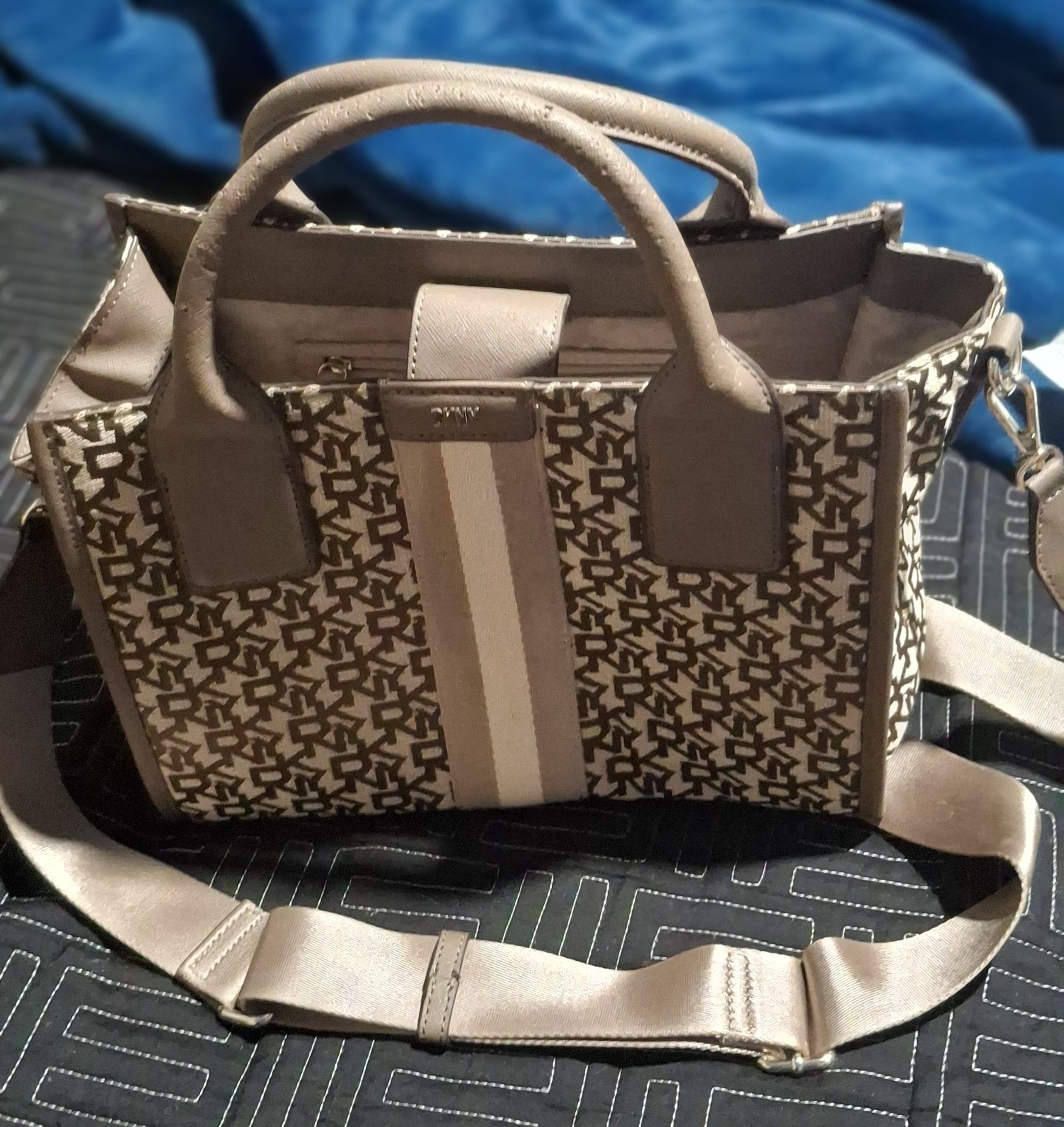 USED GOOD CONDITION DKNY GREY TOTE BAG WITH BROWN