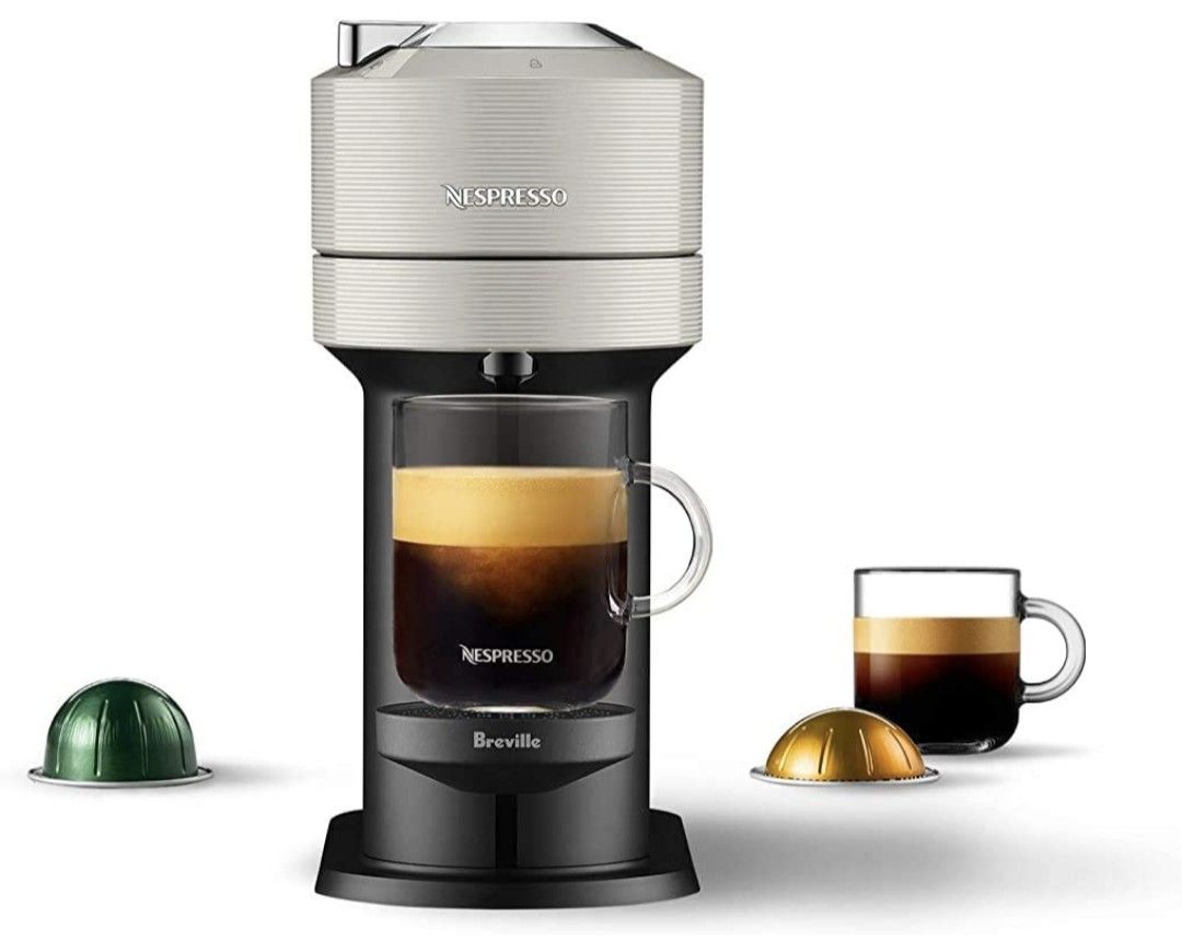 Product details Brand: Nespresso-Breville Capacity: 18 Fluid Ounces Color: Light Grey Special Feature: Programmable,Removable Tank Coffee Maker Type: Espresso Machine Product Dimensions: 6"D x 17"W x 12"H IMPOSSIBLY GOOD QUALITY: Exclusively compatible with Nespresso Vertuo capsules featuring over 30 blends and producing velvety crema indicative of only the highest quality A RANGE OF OPTIONS: Vertuo Next makes both coffee and espresso in a variety of sizes: 5 8, and 18oz coffees, and single and double espresso SLEEK SUSTAINABLE: Only 5.5 inches wide and made of 54% recycled materials with energy-saving automatic turn off EXPERTLY BREWED EVERY TIME: Revolutionary one-touch brewing system uses barcode-scanning technology to guarantee the perfect brew COMPLIMENTARY GIFT: Each machine includes a complimentary starter set of Nespresso capsules (capsule assortment may vary from picture) QUALITY ROOTED IN SUSTAINABILITY: Not only does the hermetically sealed aluminum capsule protect the freshness of our coffee but its also fully recyclable. Plus, Nespresso's recycling program makes returning and recycling your capsules easy COFFEE FOR EVERY TASTE: Bold or mild hot or iced, there's a blend for you; explore all 30+ permanent capsules and indulge in special seasonal and Limited Edition coffees available exclusively through Nespresso