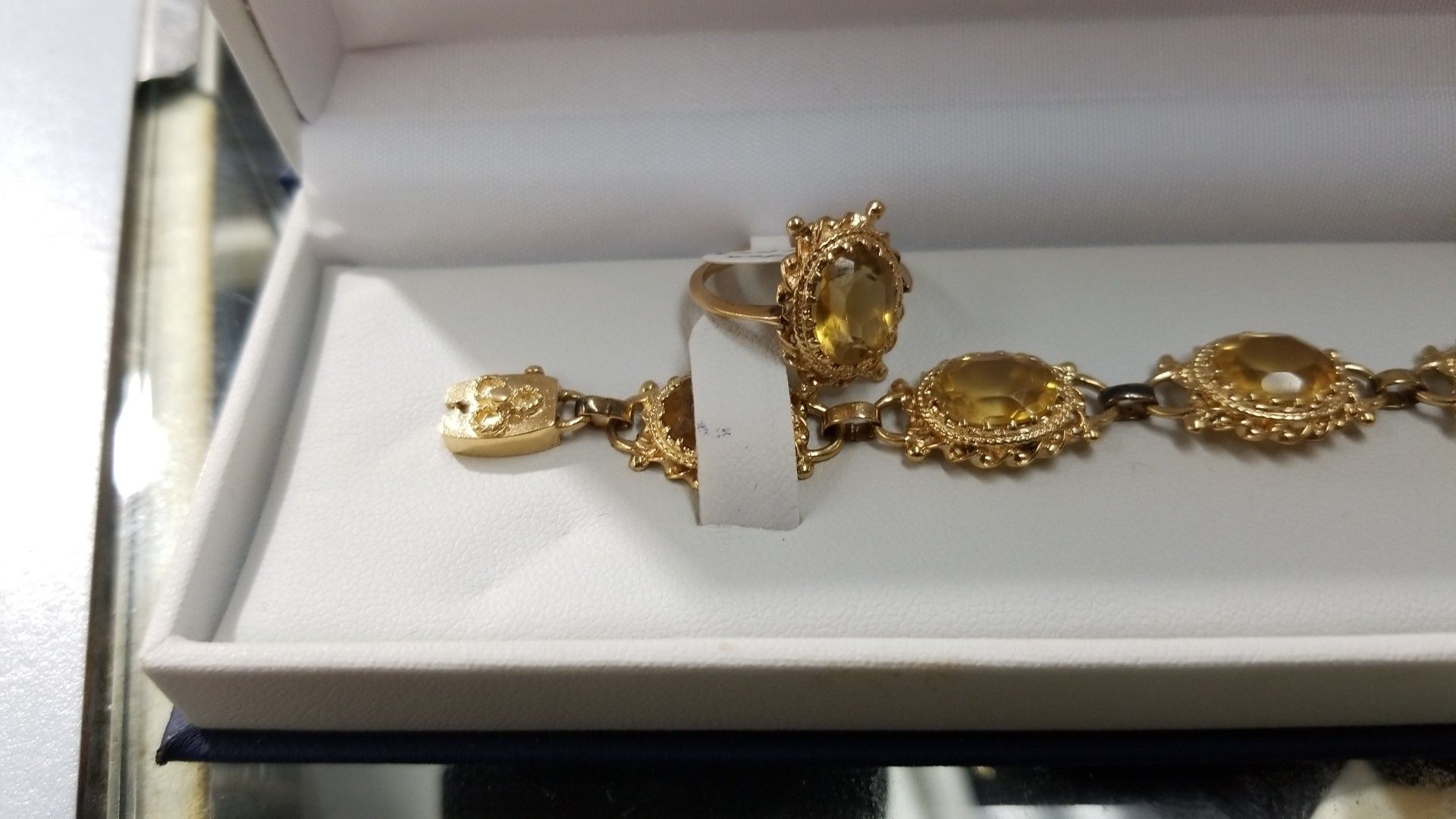 This is a bracelet and ring size 6.5 the bracelet measures 7.5 with clasp 14 it gold serious inquires only