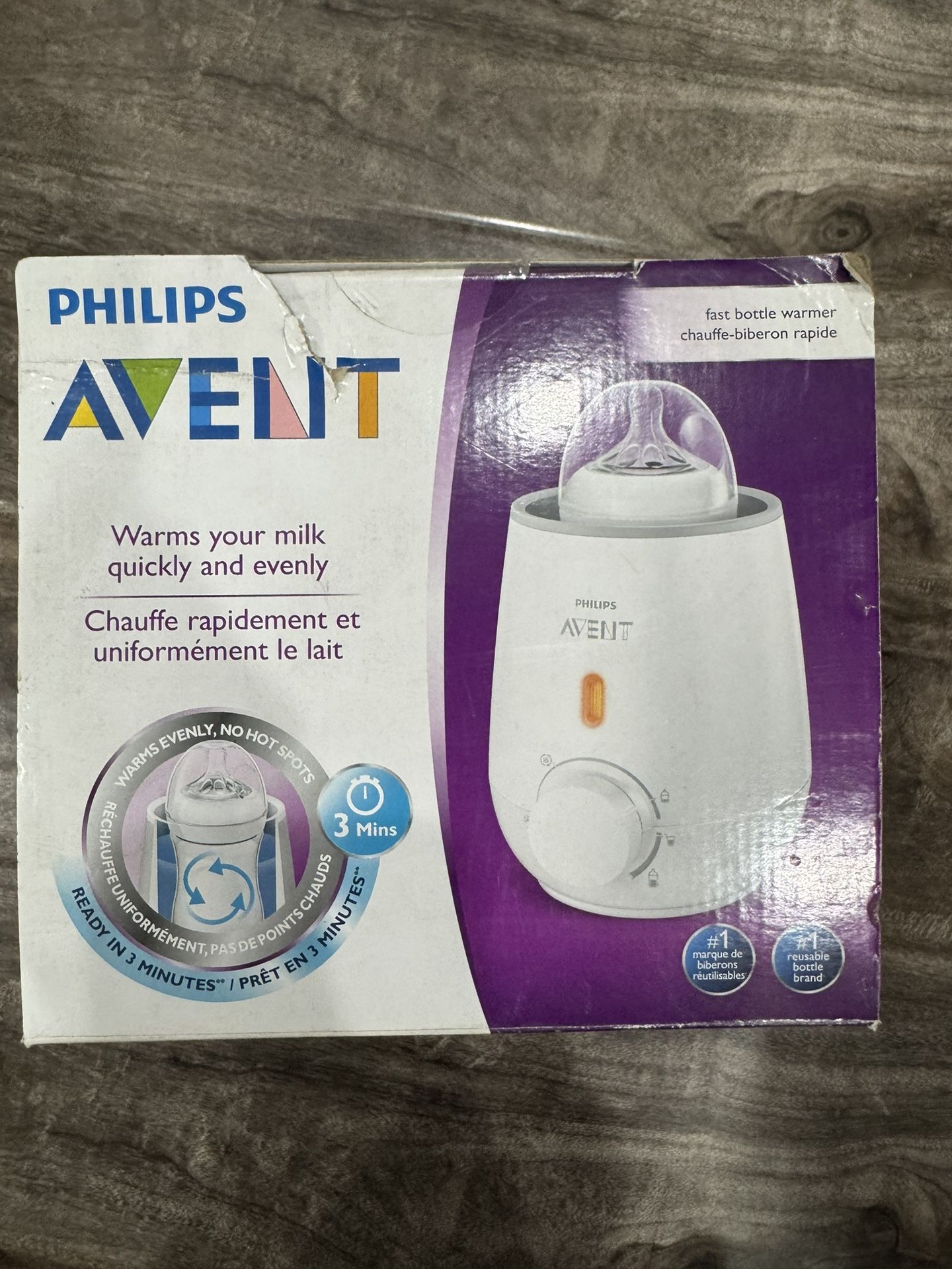 Philips Avent baby bottle warmer and food warmer Quickly heat bottles or warms food. Has a defrost setting also.