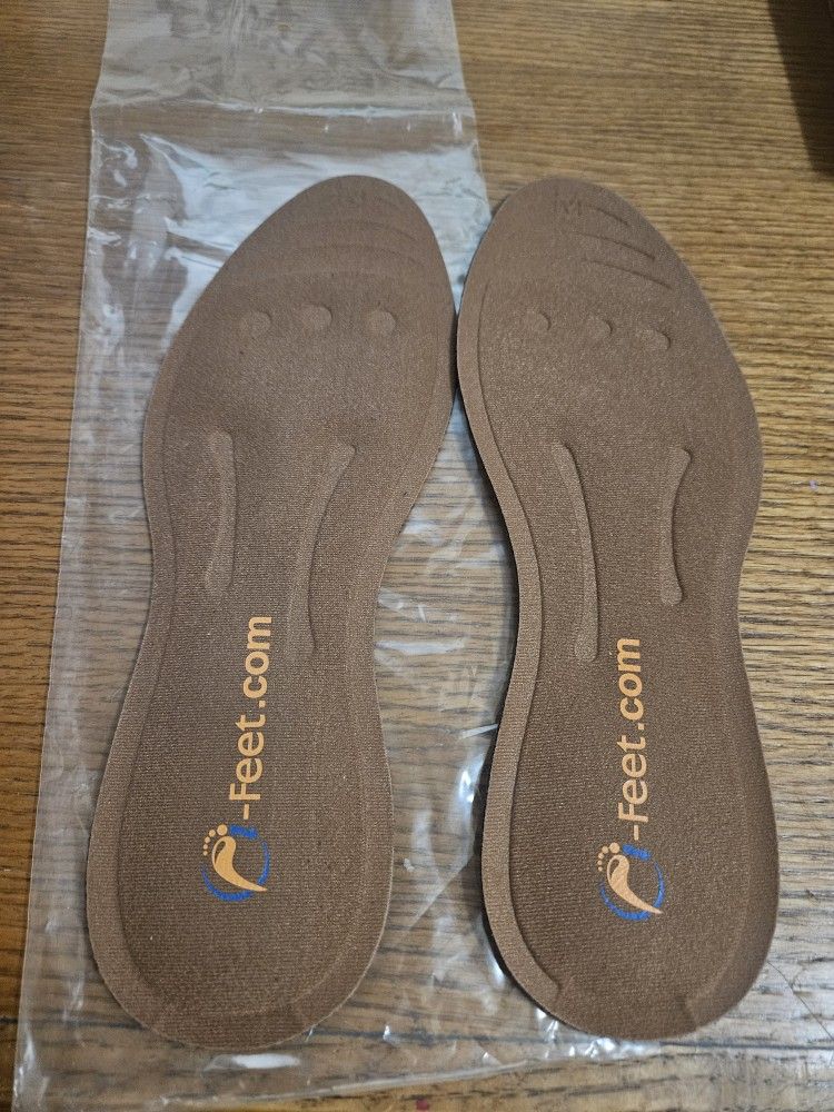 I am selling 1 pair of liquid sole inserts from the maker I-Feet. The insert fits shoe size for Women's(8.5-10)/Men's(7-8) and marked as M. Item is brand new, has never been worn and comes in the original packaging. Item comes with informational sheet which shows product info and care instructions. I currently have 40 available.