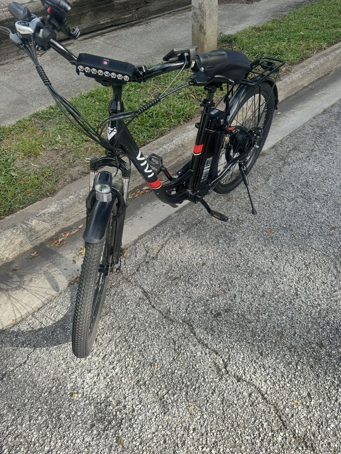 Purchased the bike brand new from the official website for about $500 One owner. The bike is in good condition chain, gear shifter, and derailleur don’t have rust meaning no popping. 700 miles on it. 500W motor 65 nm of torque, 5 pedal assist/throttle modes. Only thing you should know is that the bike has cable brakes and the front disc brakes biting, i removed the old pads and got some new organic ones from kyle’s bike shop but the noise is persistent so im assuming the rotor is warped. The back brakes have a bit of life in them but it’s gotta be tighten. if it’s not tight enough you’ll need some new pads. They cost around $13 bucks. If you want you could also make them hydraulic. Also front OEM headlight doesn’t work but i have an after market one that charges with USB-C but if you message CS they could get you one. Meet in the downtown area / Lake eola. Cash only please, $380 OBO Any questions let me know!
