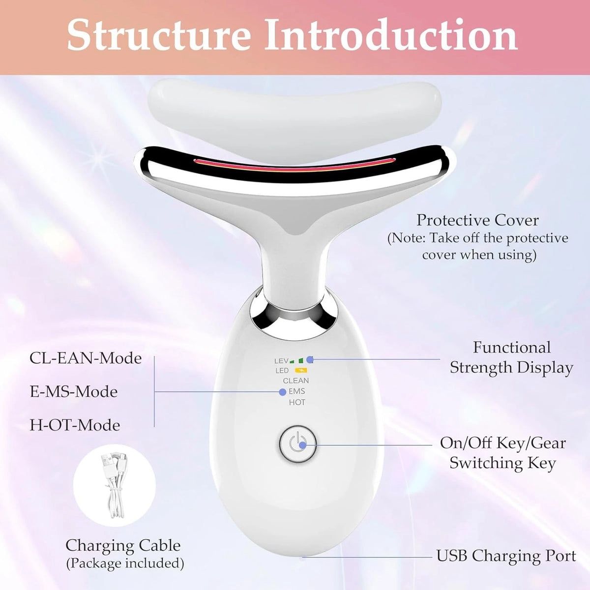 EMS Thermal Neck Lifting And Tighten Massager Electric Microcurrent Wrinkle Remover LED Photon Face Beauty Device For Woman