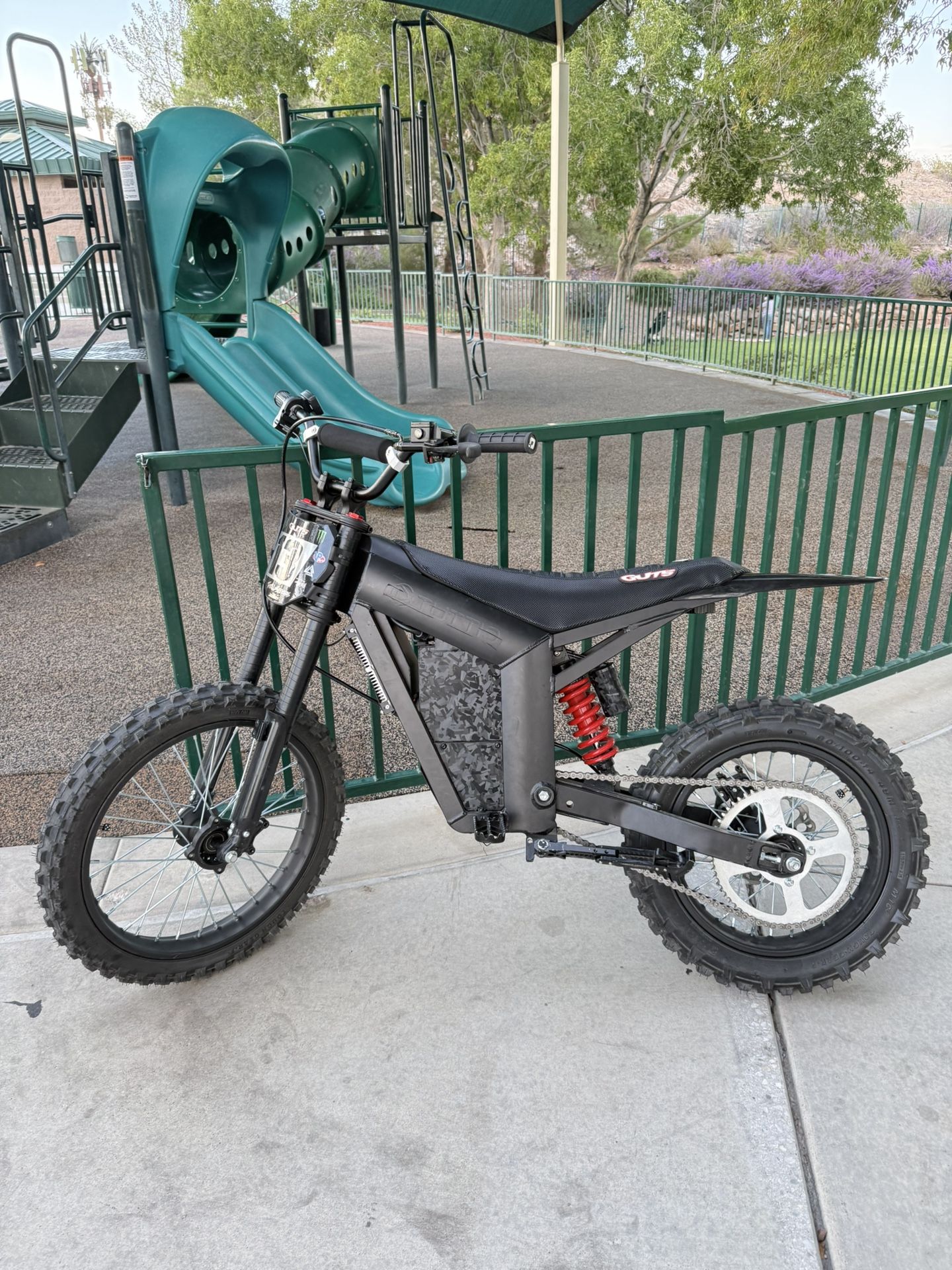 I have a econic cycles trottle kit on (Not in photo) Gutz Seat cover 17/14 wheels Upgraded bars Red Rear Shock Odi plate and decal Blacked out forks LOOKING FOR XXX SURRON OR RTR NORMAL I WILL ADD CASH