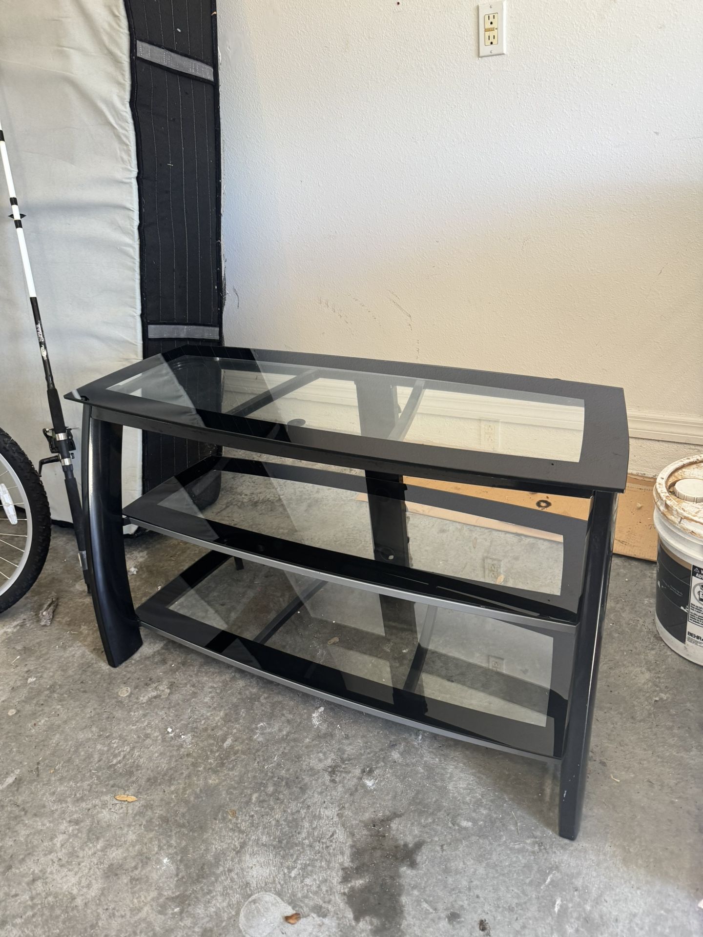 Glass entertainment center. Some very minor scratches here and they’re on the glass but they are very hard to see. Great condition otherwise