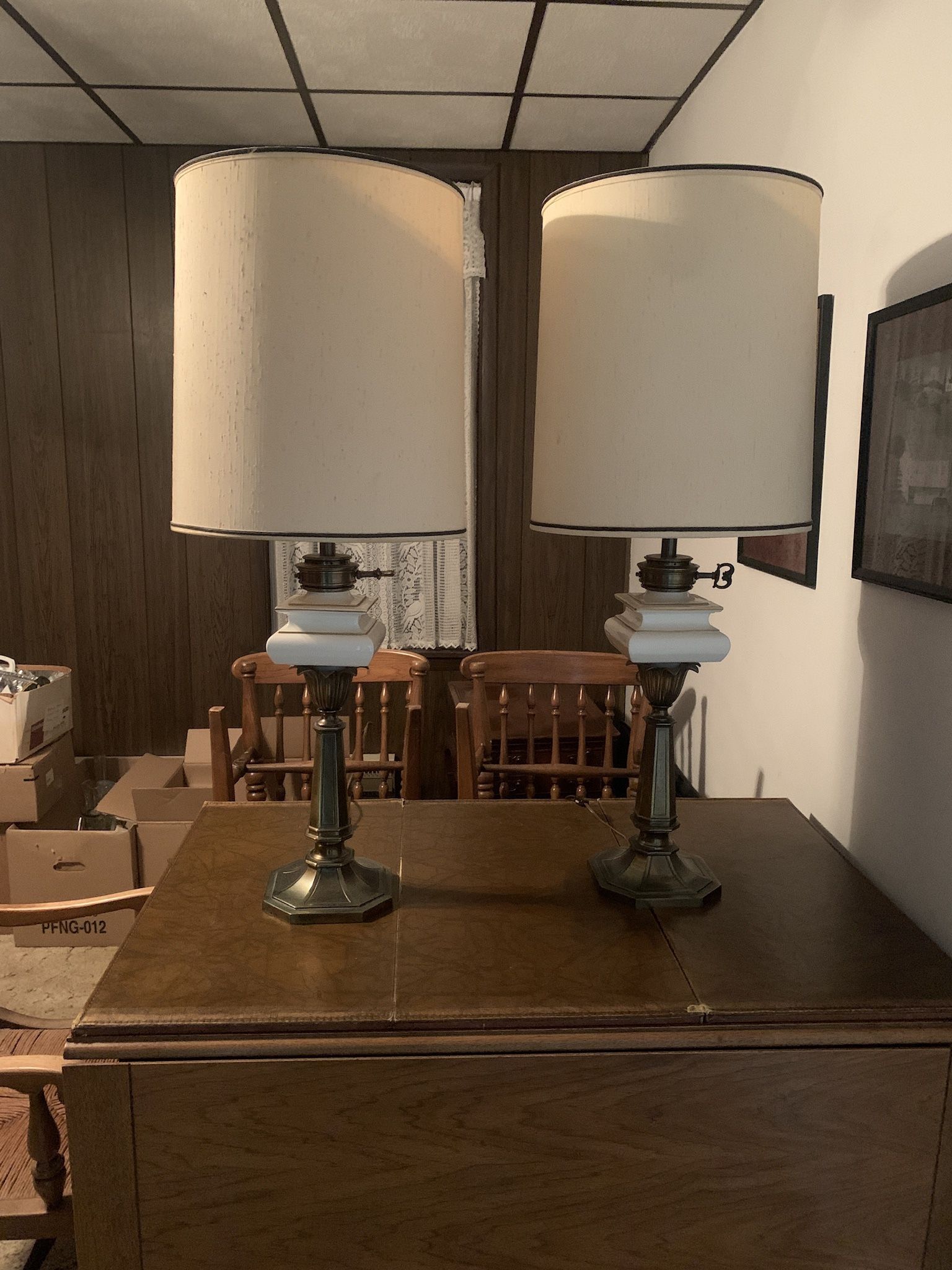 (2) vintage Stiffel white porcelain and brass table lamps. Excellent condition, from smoke free pet free home.$250 for the pair
