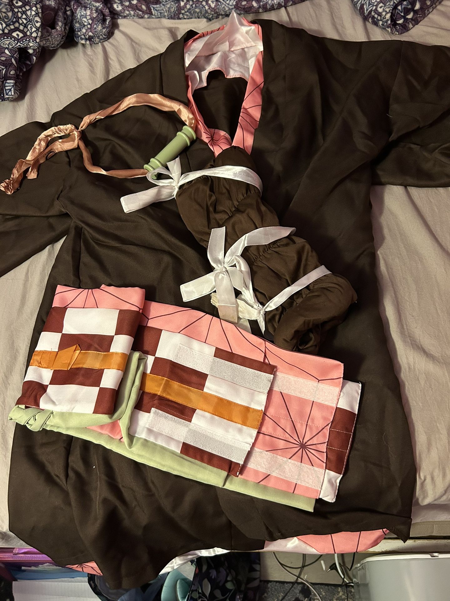 All costumes, don’t pick out what you do or don’t want. Lowest i go is 100 A lot of these can be used for multiple costumes when mixed and matched. You might want to wash them before wearing. I am 5’1 115lb, most of these fit a woman’s small/medium but the shinobu cosplay is a woman’s large, especially on the top (simple sewing tweaking can fix this) 1 Demon slayer nezuko costume Includes: kimono, kimono belt, mouth piece, bow, 1 leg warmer (I couldn’t find the second one I’m sorry. If I find it I’ll message the buyer) 1 Demon slayer Shinobu costume Includes; Demon slayer uniform top, uniform bottom, belt, both leg warmers, butterfly kimono 1 doki doki literature club outfit (Or general anime school outfit) Includes; White collar blouse, tan knite under blouse, gray overcoat 1 sailor girl outfit Includes; 1 sailor girl dress 1 general anime girl school outfit (used for my hero academia himiko toga cosplay) Includes; anime girl sailor top (long sleeve), tan blouse 1 long cloak (used for kingdom of hearts Mickey Mouse, but the ears and tail are gone) Includes; the cloak Extra trinkets; Anime girl sailor bow, fake round glasses, sailor girl top piece, sailor cuffs, unused teeth glue Dm if interested