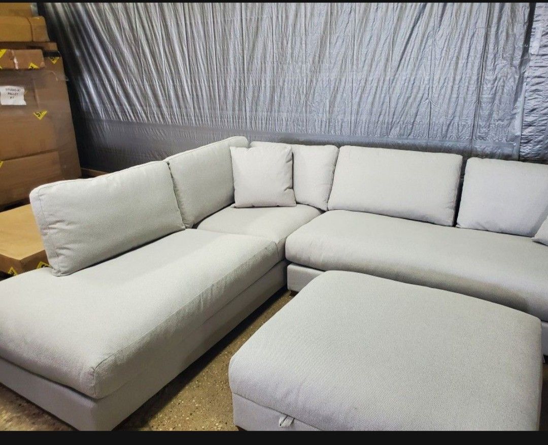 Deep Seating Fabric Sectional with Storage Ottoman(New)