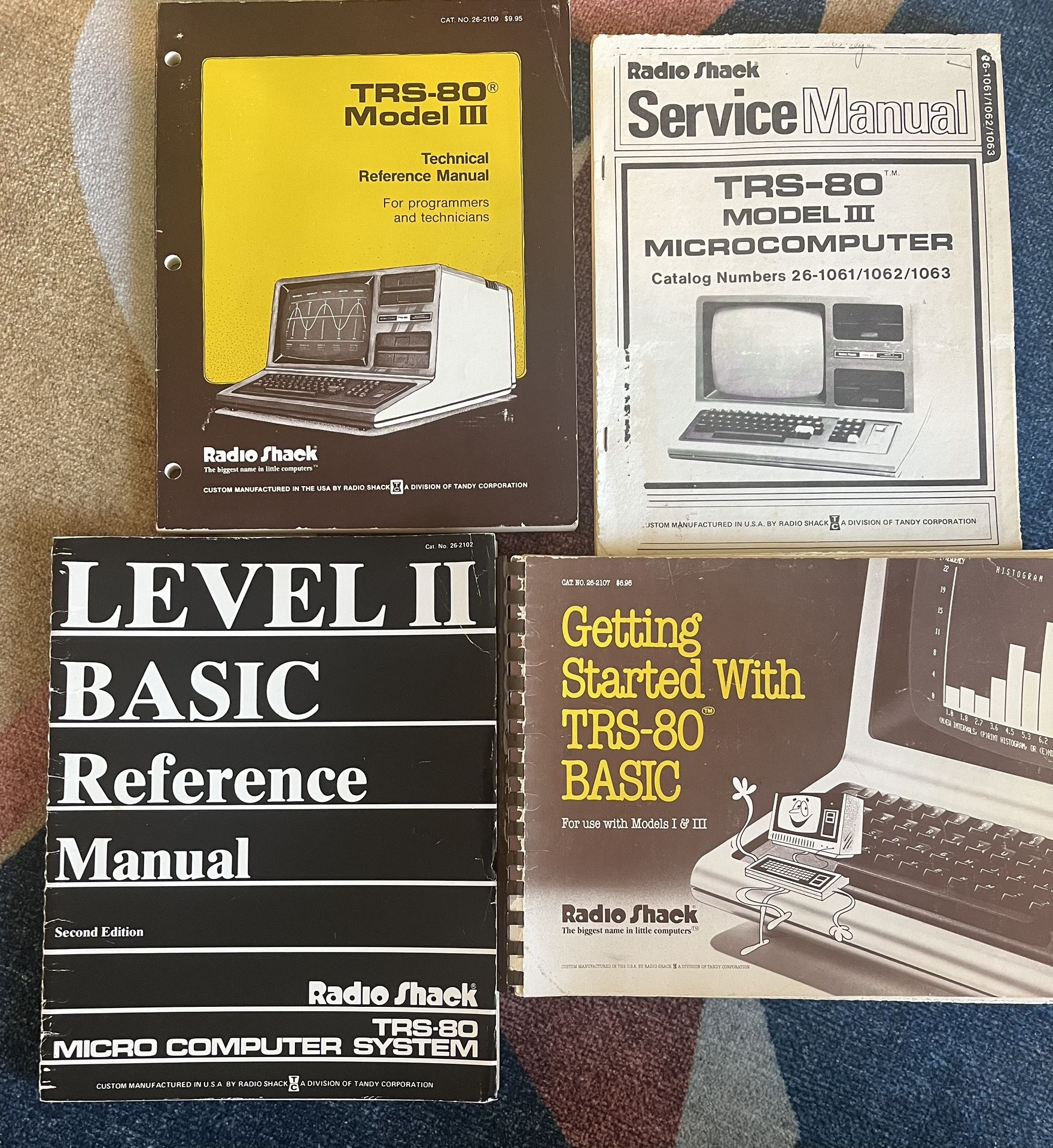 Available to a good home for donation to a food bank or homeless shelter. Don’t know if the disks and tapes work Manuals: TRS-80 Model 3 Technical Reference Manual TRS-80 Model 3 Service Manual Getting Started with TRS-80 Basic Level 2 Basic Reference Manual Software TRSDOS Version 6 Model 5 TRSDOS and Basic TRSDOS 2.3 CP/M 2.2 for Model 4 Pascal80 Mathplot Le Script Grafyx Draw VisiCalc Frogger Apple Panic Stone of Sisyphus Sea Dragon Clash Curse of Crowley Manor Eliminator Jet Fighter Pilot Typing Teacher Aug 1983 80Micro Games The Word Manuals (some for programs not included)