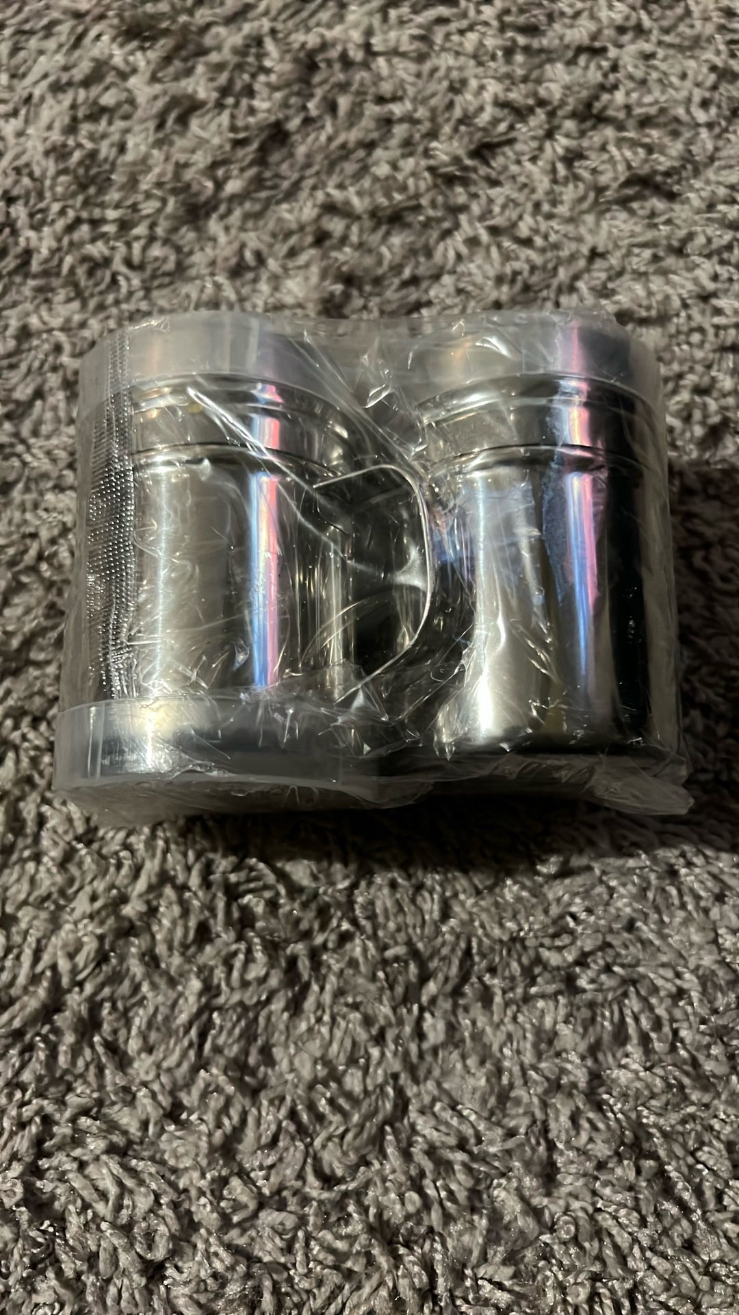 BRAND NEW. Unopened. Set of two dredges: a 6 oz shaker with a fine mesh top and a 10 oz shaker with medium-sized holes. Both shakers are constructed of stainless steel and include handles, twist-off lids, and plastic caps The 10 oz cinnamon shaker with medium-sized holes is suitable for dispensing any coarse or fine spices and seasonings Small powdered sugar shaker with mesh top - for fine condiments (flour, vanilla, powder)