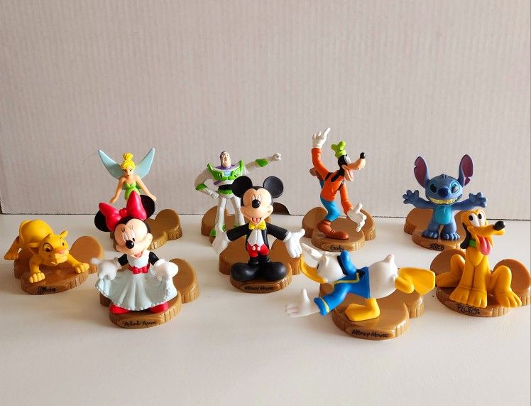 Disney McDonald's Disneyland 50 Celebration Mickey Minnie Donald 9 Toy Figures excellent Single owner Includes Mickey Minnie Donna's duck Stitch Tinker bell Goofy Pluto Simba Buzz light year